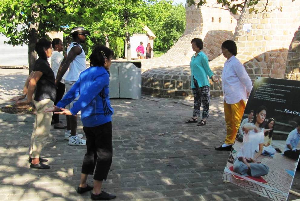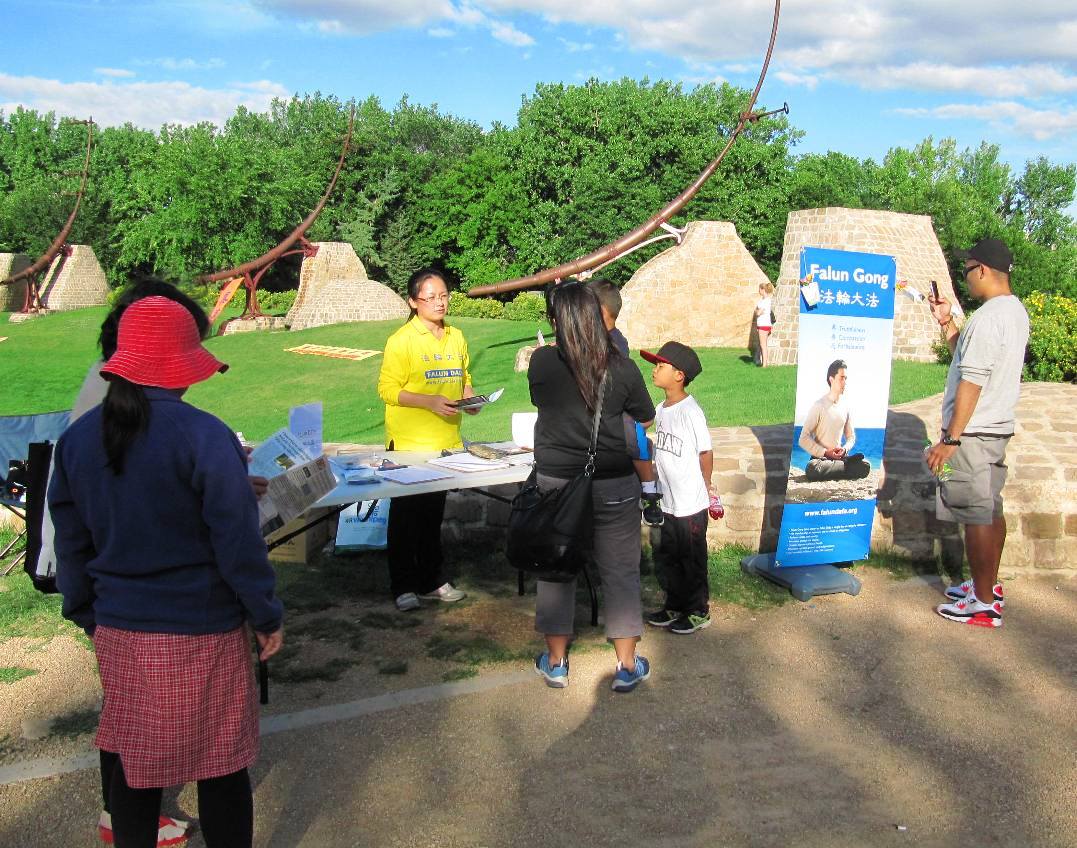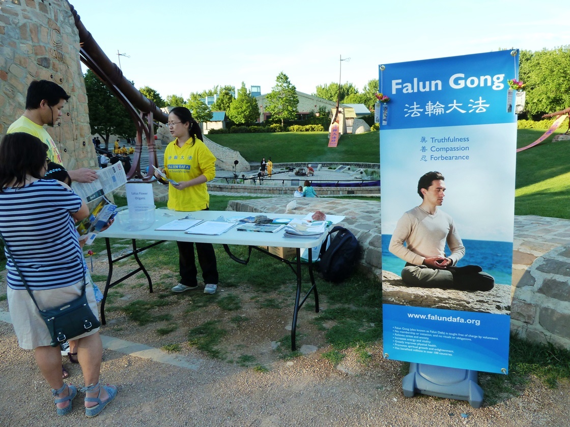 很多来公园散步的人都停下了脚步,观看摆放在草地上的真相展板,不少人明白真相后都签下了名字。当天傍晚天气非常好,整个活动在庄严祥和的气氛中结束。