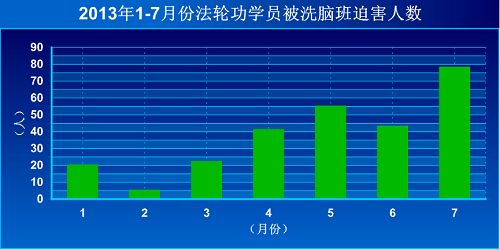 以七月份为例,大陆有四百三十二名法轮功学员被绑架,其中有七十九人被绑架到四十个洗脑班,占被绑架人数的百分之十八。