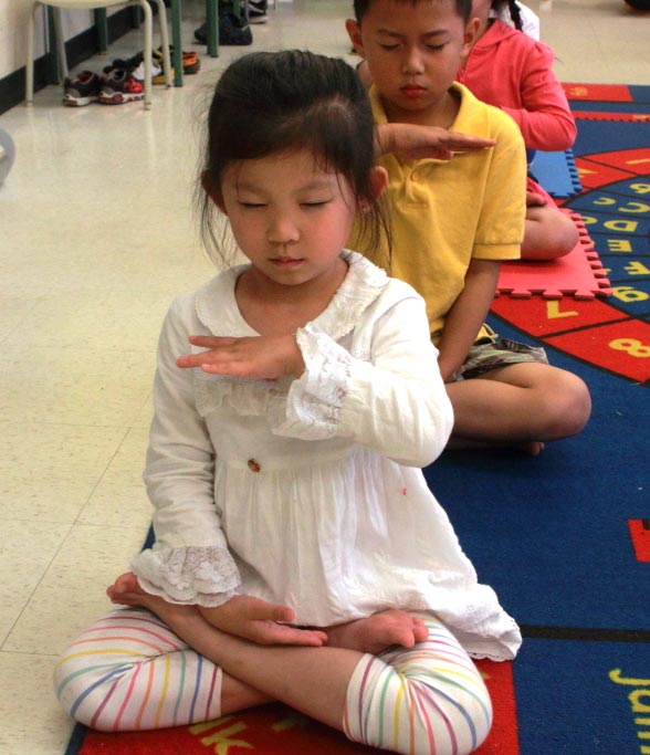 燕子老师说:“开始看到孩子们炼功的时候都是东挠西挠的,一会儿摸眼睛,一会儿抠耳朵,我总有责备,但好象又没办法。有一次我就试着跟他们一起打坐,我感觉到他们那个场是非常的纯,很平静,没有私心杂念。好动只是孩子们的特点,而纯净是他们的本质。理解了他们之后,我就没了责备,只有鼓励了。”