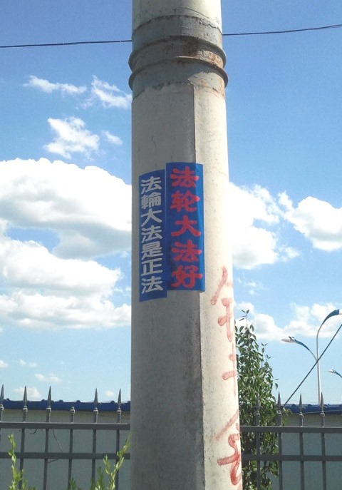 您好,今年七月二十九日晚上,新宾县永陵镇法轮功学员刘金财和妻子刘静从永陵街里回家,在回家的路上贴了“法轮大法好”的真相粘贴。刘金财被永陵派出所的警察绑架,后被新宾县国保的恶警赵连科绑架到新宾县看守所,并非法抄了刘金财的家。看到这事例,我们在明慧网上查了一下,因为粘贴“法轮大法好”真相的善良法轮功学员被判刑、教养、拘留、罚款的比比皆是。那么法轮功学员为什么要贴“法轮大法好”的粘贴和写“法轮大法好”的字呢?