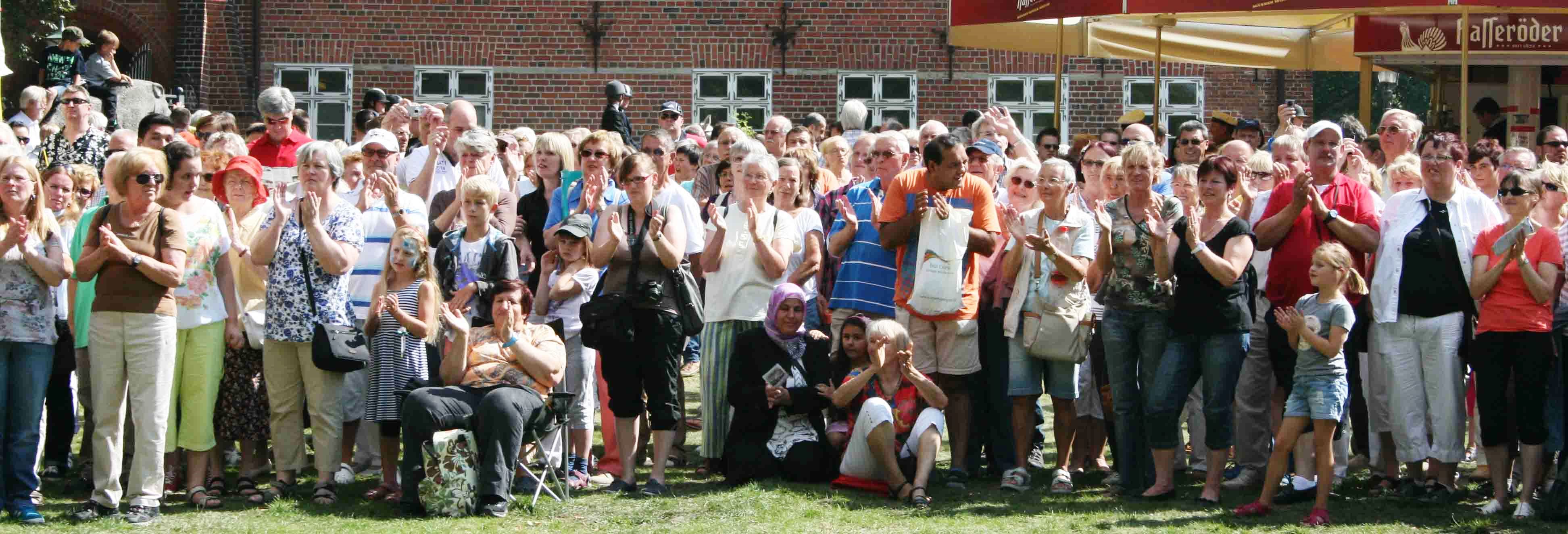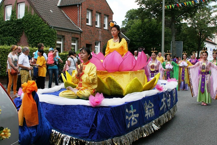 二十五日上午,主办方举行招待会,邀请各团体代表参加并致感谢辞。法轮功学员和主办方互赠礼物。下午一点开始,游行队伍穿过贝格尔多夫市。沿途观众用热烈的掌声表达他们对法轮功团体的喜爱。