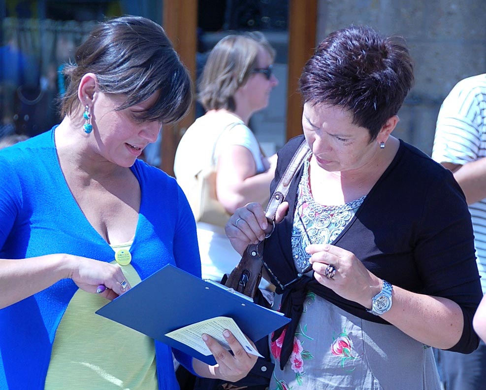 当听到了中共活体摘取法轮功学员的器官后,人们在震惊之余,纷纷在制止活摘法轮功学员器官的征签表上签名。经常是一位游客签字后,让全家人都来签字。往往是全家六七口人都来签字。还有人向法轮功学员打听炼功点的讯息。