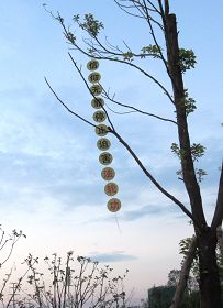 【明慧网二零一三年八月九日】自从一九九九年“”开始至今,大法弟子在反中走过了十四年。大陆各地的大法弟子都在用各种各样的方法助师正法救众生,开展了很多不同的项目。近几年来,湖北省某地区的大法弟子们充分利用制作真相光盘留下来的废盘、不能刻录的空盘,制作了很多真相标语。无论是过年期间给众生拜年、还是纪念“”和平上访日、还有“五一三”世界法轮大法日来临、“七二零”等中共邪党的敏感日来临期间,都会赶制一批各种颜色的、一串串废光盘制作的真相标语,和一个个光盘画。悬挂在城市与乡村的大街小巷,公路边等。新颖别致,很容易吸引人观看。