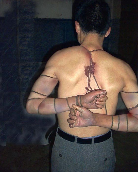 在洗脑班,何桂红遭受了四十多天长时间的站立,有二十多天每天站二十多个小时不许上厕所,站得双脚肿得不能走路。恶徒还将风油精抹入她的眼睛内,强迫坐老虎凳(用布条捆住双脚绑在凳脚上,双手捆绑在凳的扶手上,身子绑在凳的靠背上),连续三天每天两次的野蛮灌食,用一根塑料管插到口或鼻子里,插进去又拔出来,一个女护士故意来回插拔几次,插的鼻子鲜血直流,眼睛出血,吐出来流食中也是血,还用电棍电击。在洗脑班里,一个叫刘成(洗脑班二中队队长)的,还拿笔在何桂红的手臂上、脸上、胸前写什么决裂书(内容为放弃自己的信仰,对自己的信仰进行谩骂侮辱等)进行人格侮辱。