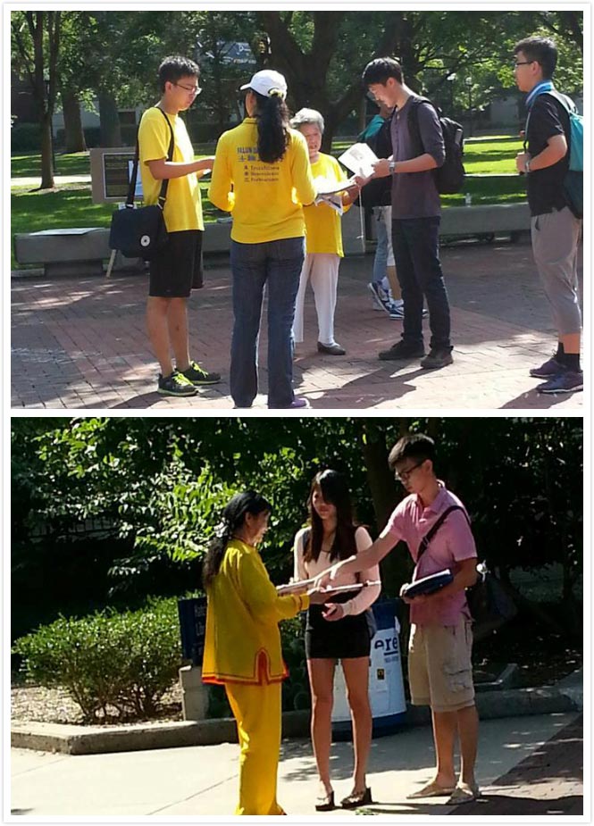 【明慧网二零一三年九月一日】二零一三年八月二十九日是美国密西根大学(University of Michigan)新生入校的第一天。这一天,在这所著名的公立大学的校园里,到处都是来自世界各地的新学生。