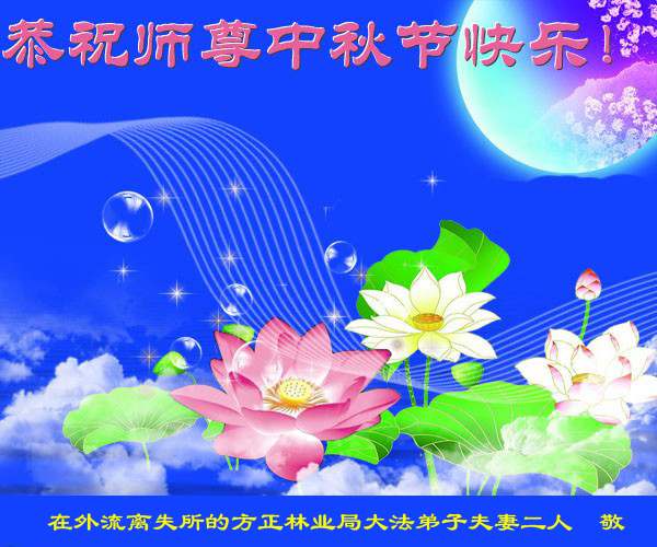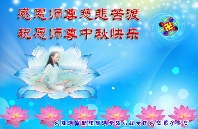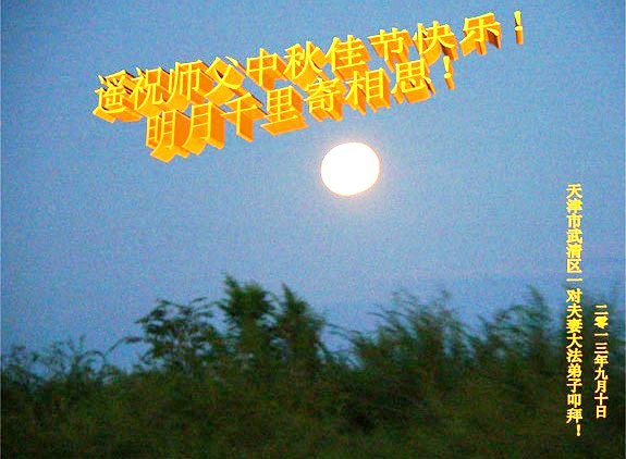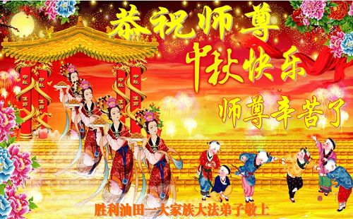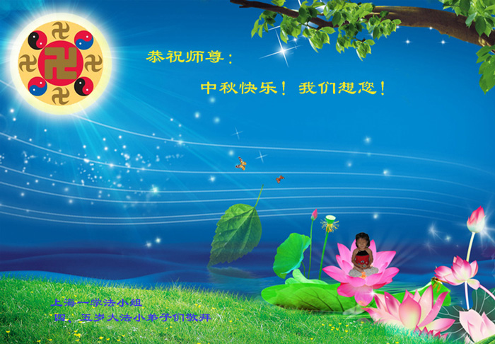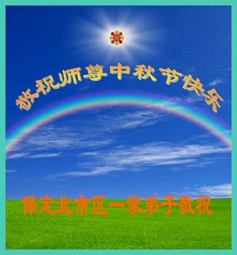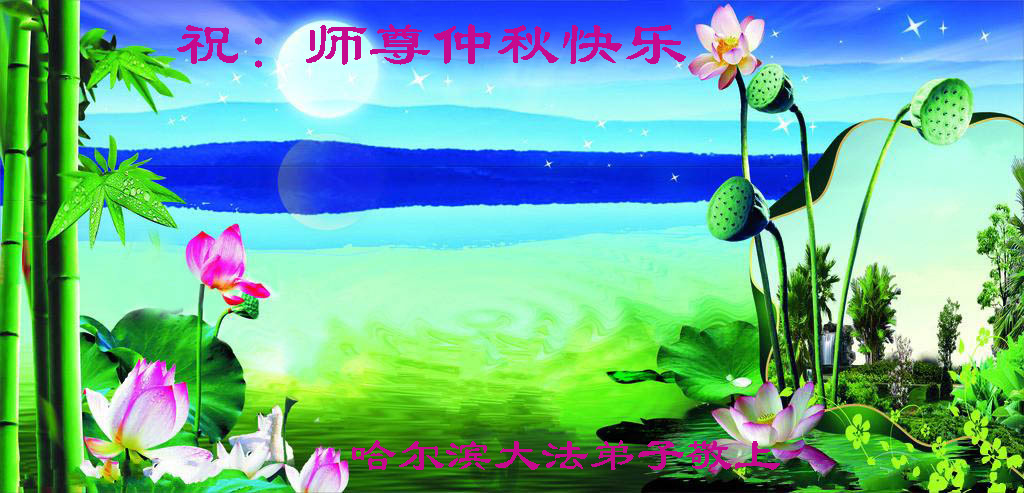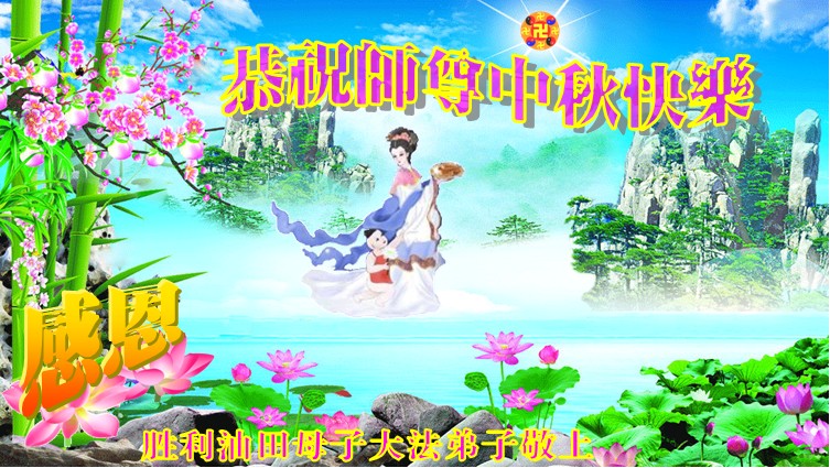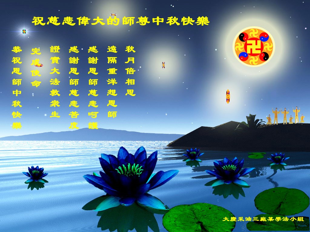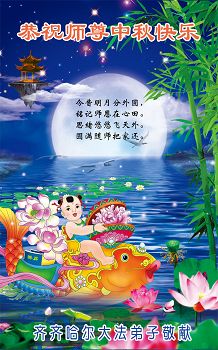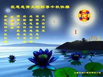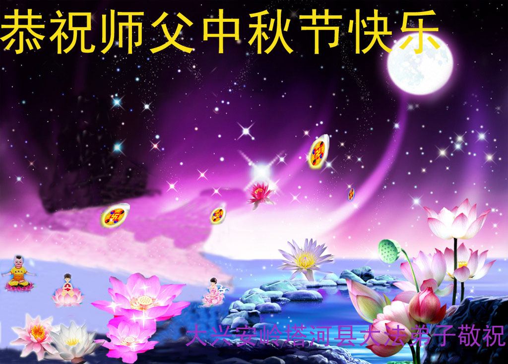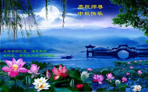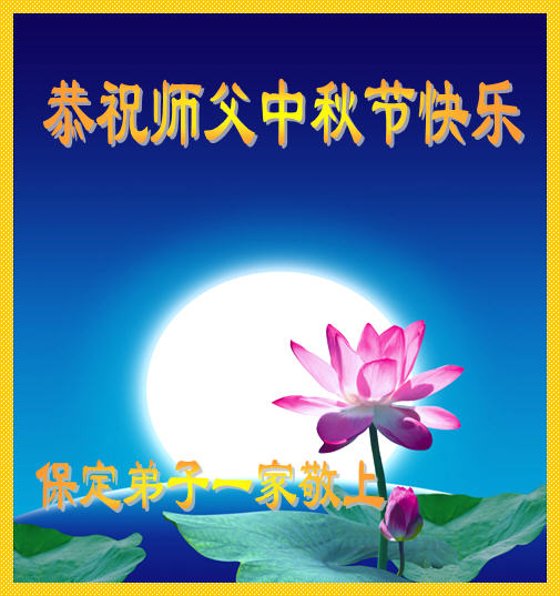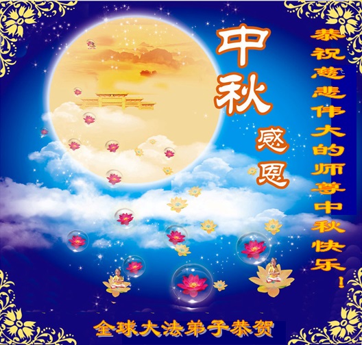 我们庆幸自己能够有如此殊荣,向远隔重洋的李大师恭祝中秋节快乐,向伟大慈悲的李大师献上我们永远的感恩!冥冥之中似乎等待了千万年,直到我们了解了大法的真相,做了“三退”,我们才如梦方醒,从中共邪党蛊惑欺骗的漩涡中跳了出来,原来自己一直以来挣扎于沼泽地中苦苦等待的就是这个!我们明白了怎样做人,怎样生活,心中充满了希望与阳光!我们由衷的感恩李大师!感恩李大师救度了我们!
