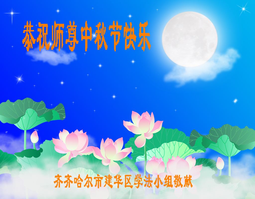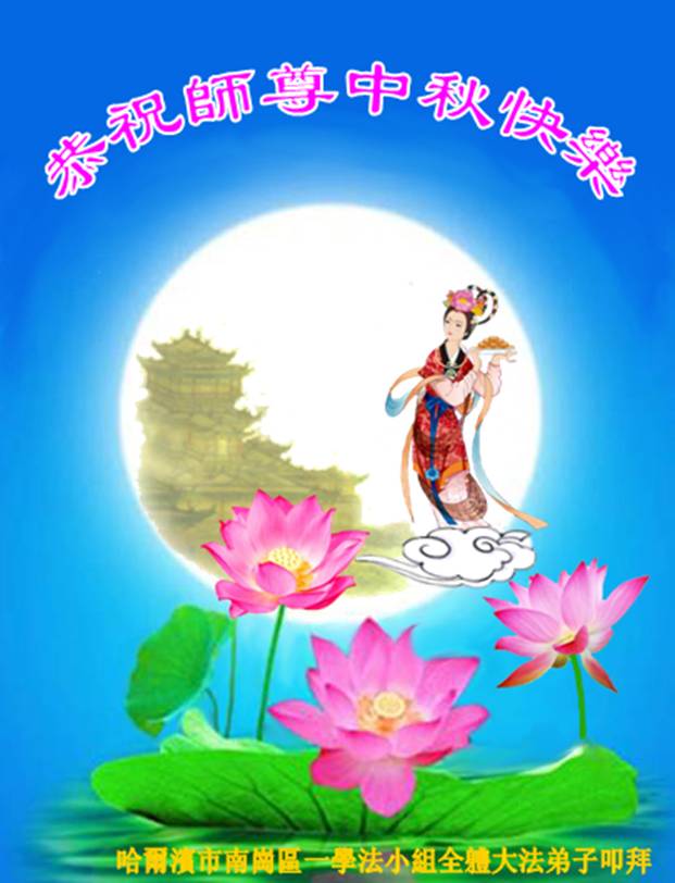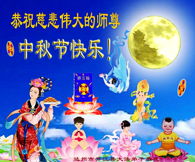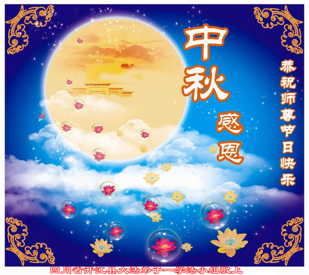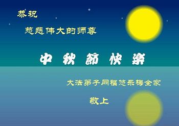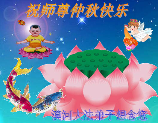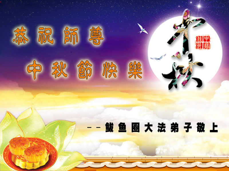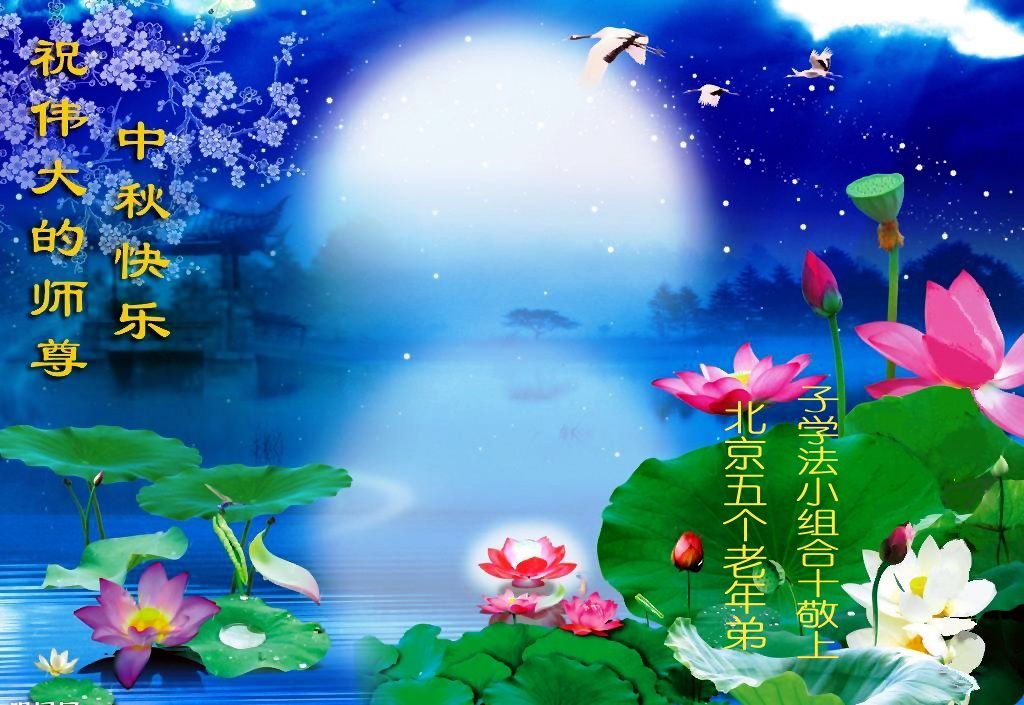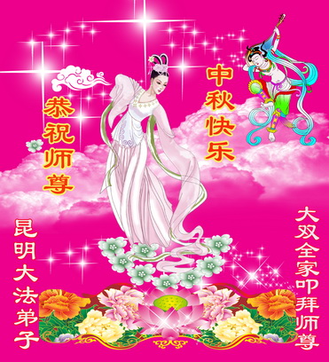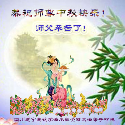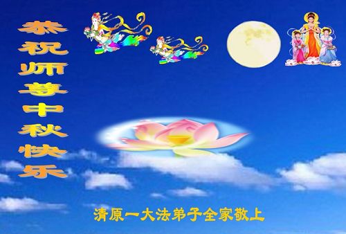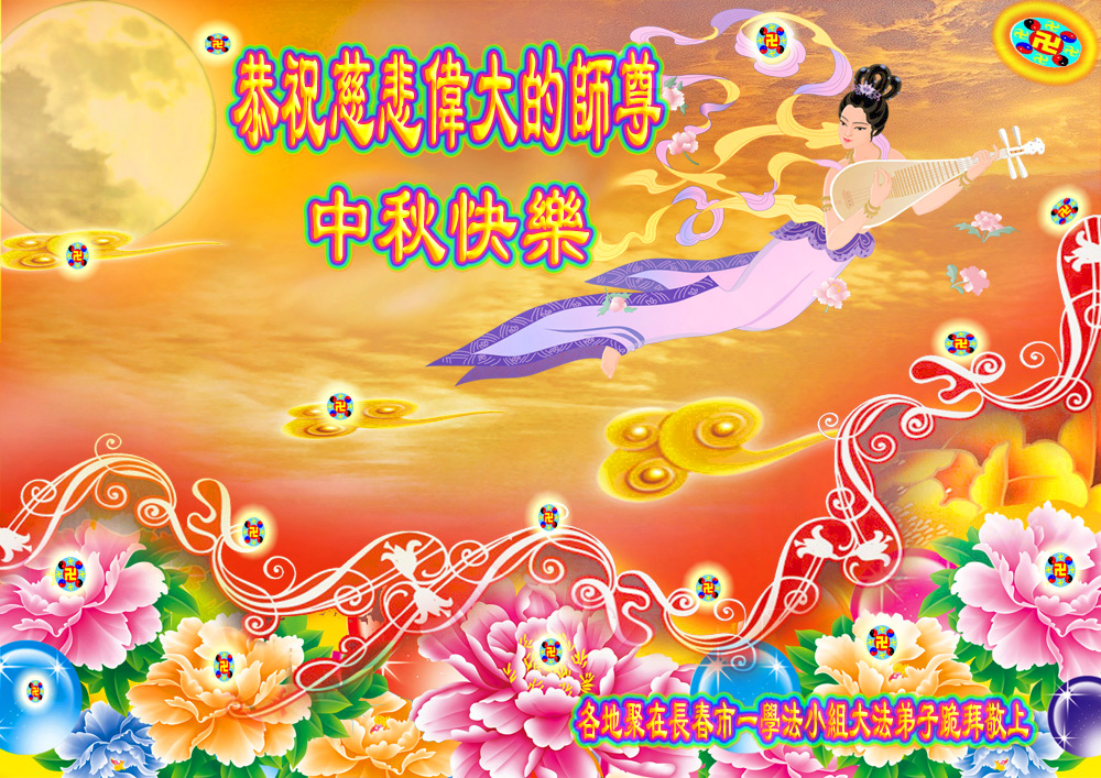 我们庆幸自己能够有如此殊荣,向远隔重洋的李大师恭祝中秋节快乐,向伟大慈悲的李大师献上我们永远的感恩!冥冥之中似乎等待了千万年,直到我们了解了大法的真相,做了“三退”,我们才如梦方醒,从中共邪党蛊惑欺骗的漩涡中跳了出来,原来自己一直以来挣扎于沼泽地中苦苦等待的就是这个!我们明白了怎样做人,怎样生活,心中充满了希望与阳光!我们由衷的感恩李大师!感恩李大师救度了我们!