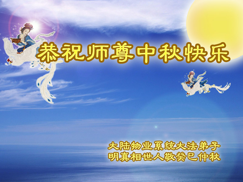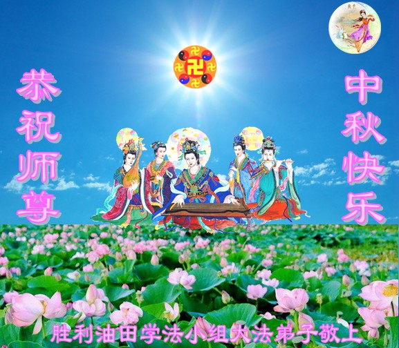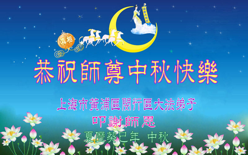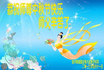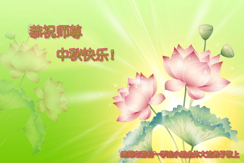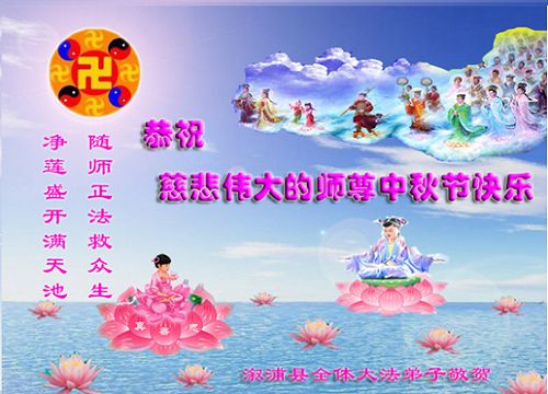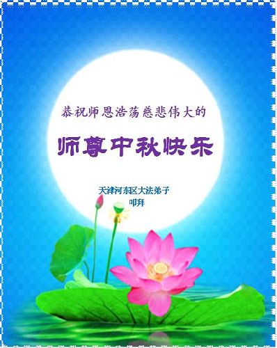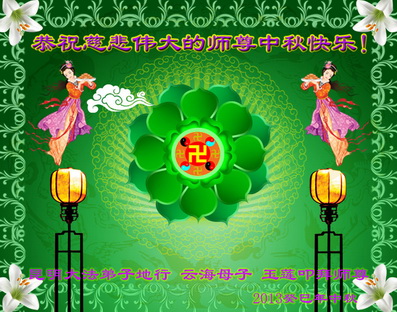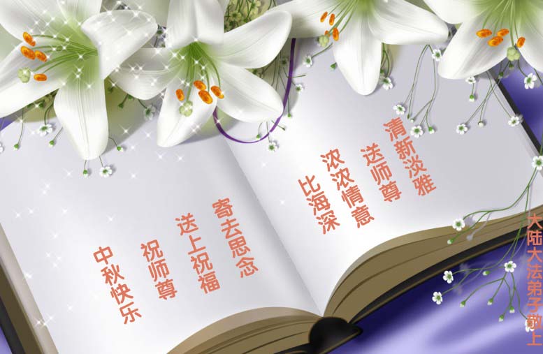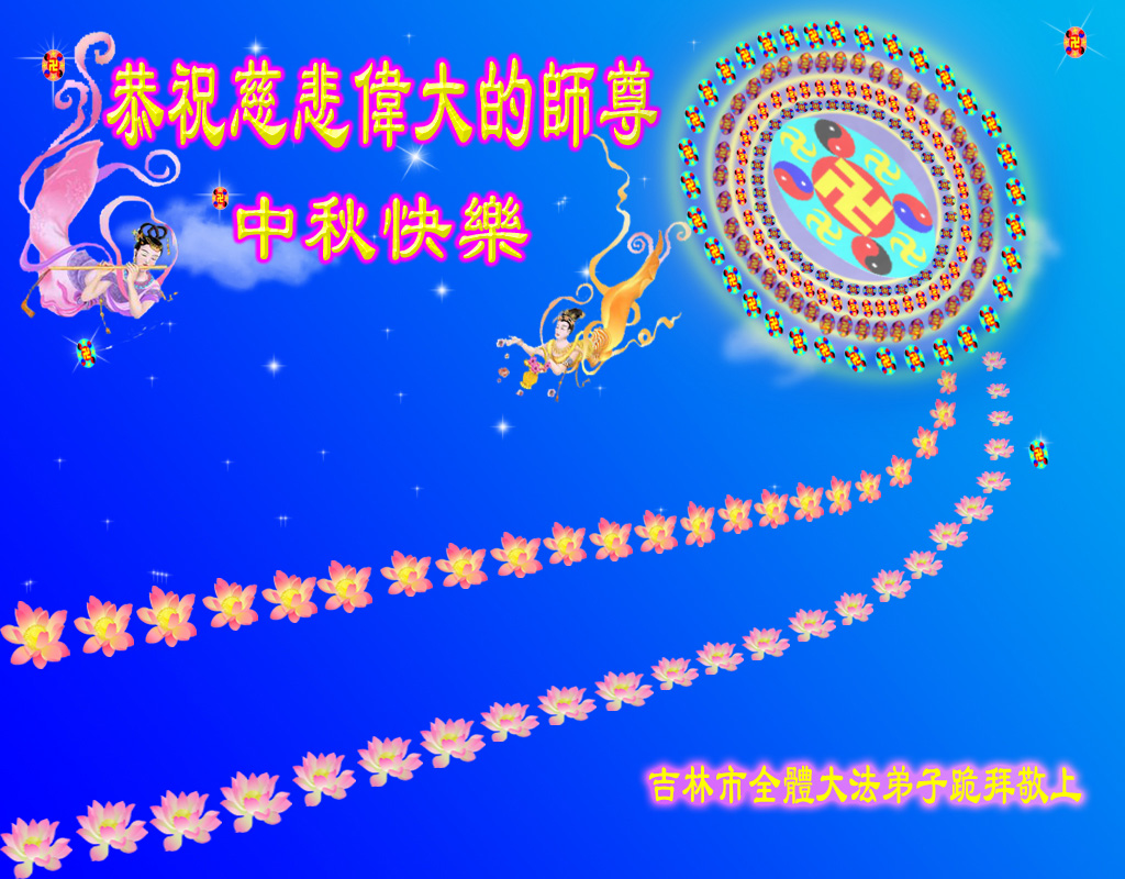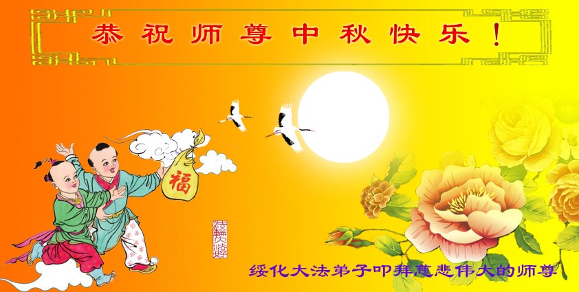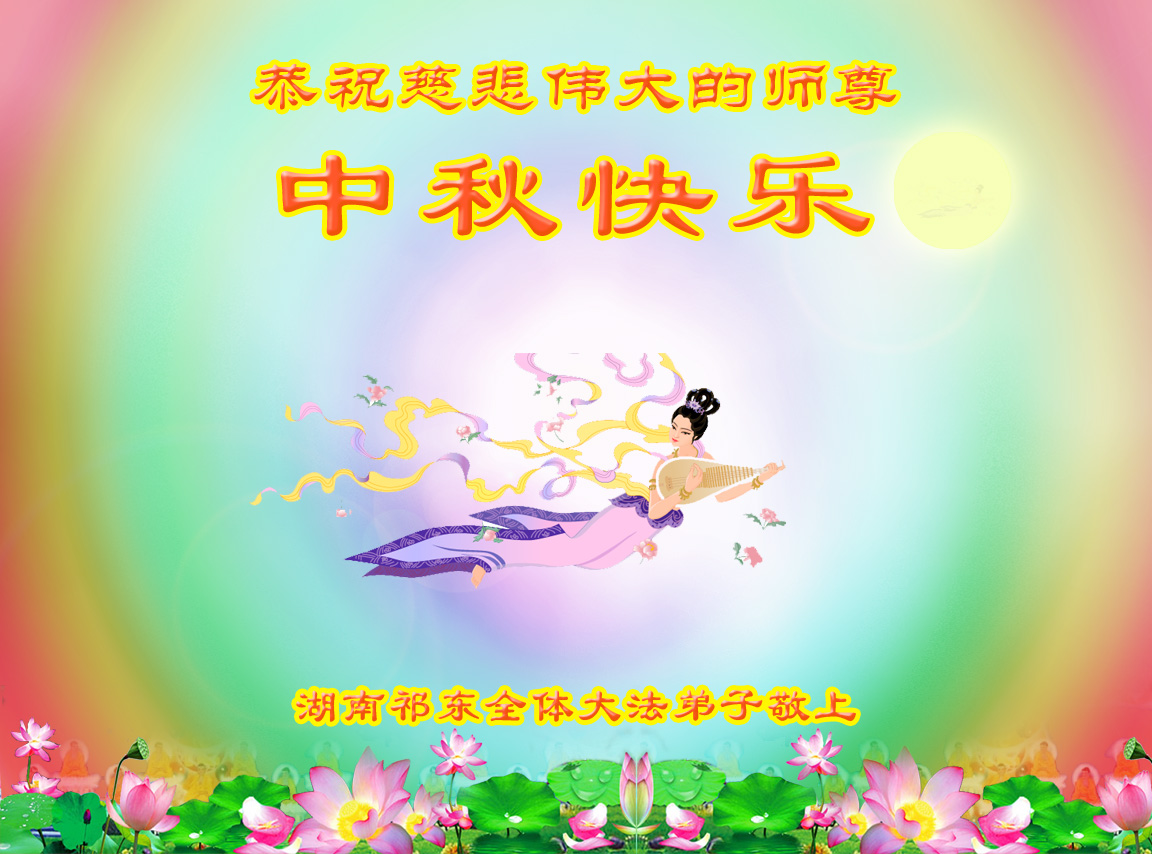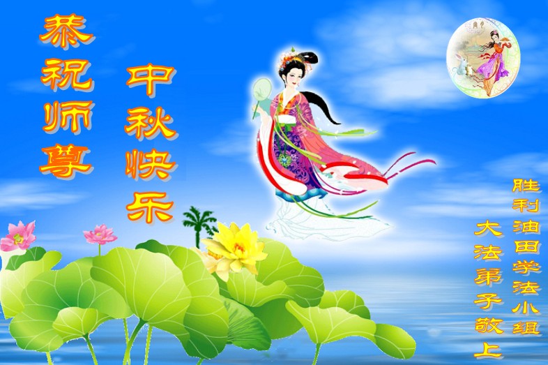 我们庆幸自己能够有如此殊荣,向远隔重洋的李大师恭祝中秋节快乐,向伟大慈悲的李大师献上我们永远的感恩!冥冥之中似乎等待了千万年,直到我们了解了大法的真相,做了“三退”,我们才如梦方醒,从中共邪党蛊惑欺骗的漩涡中跳了出来,原来自己一直以来挣扎于沼泽地中苦苦等待的就是这个!我们明白了怎样做人,怎样生活,心中充满了希望与阳光!我们由衷的感恩李大师!感恩李大师救度了我们!