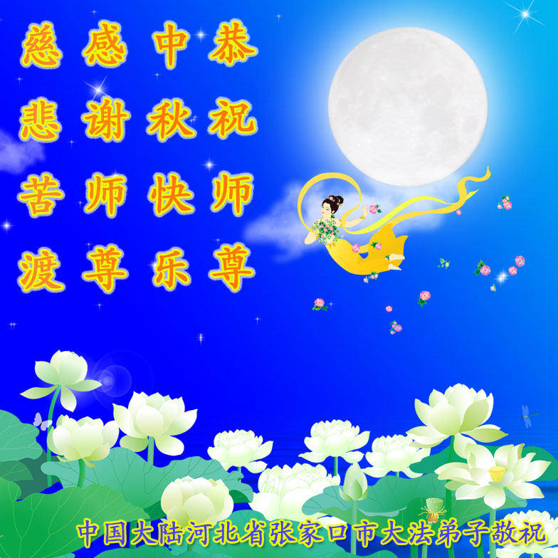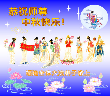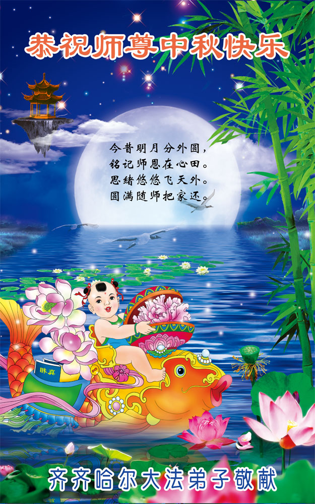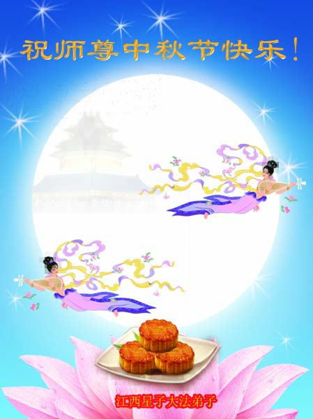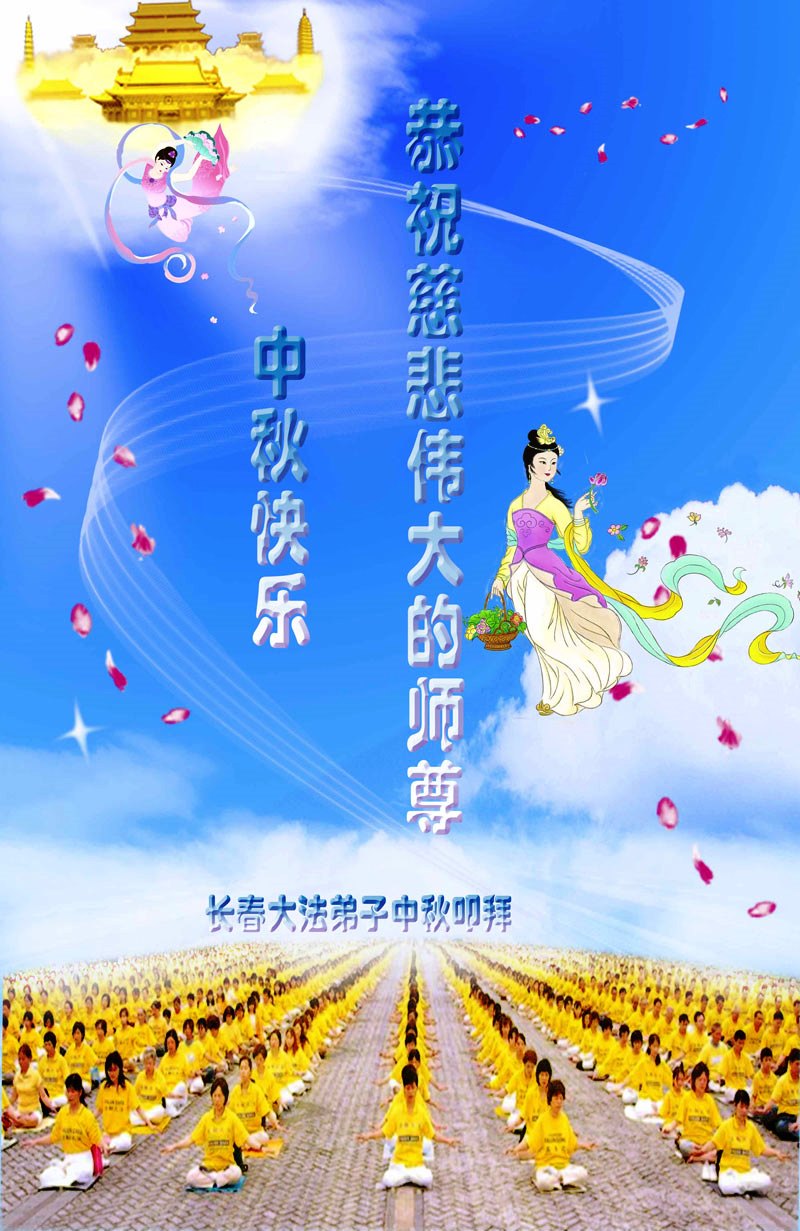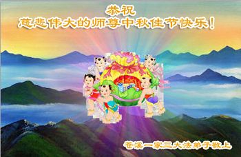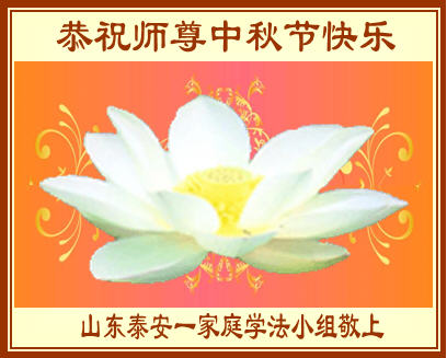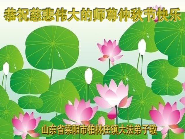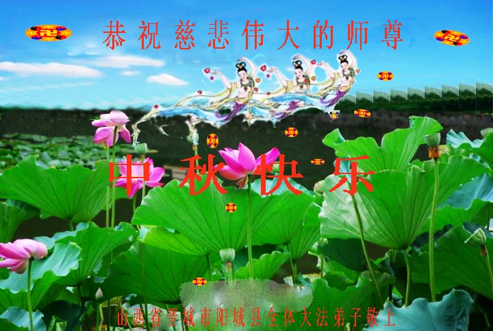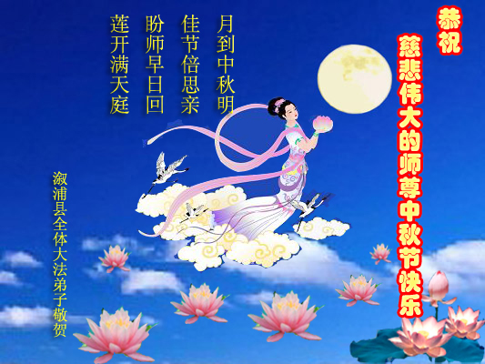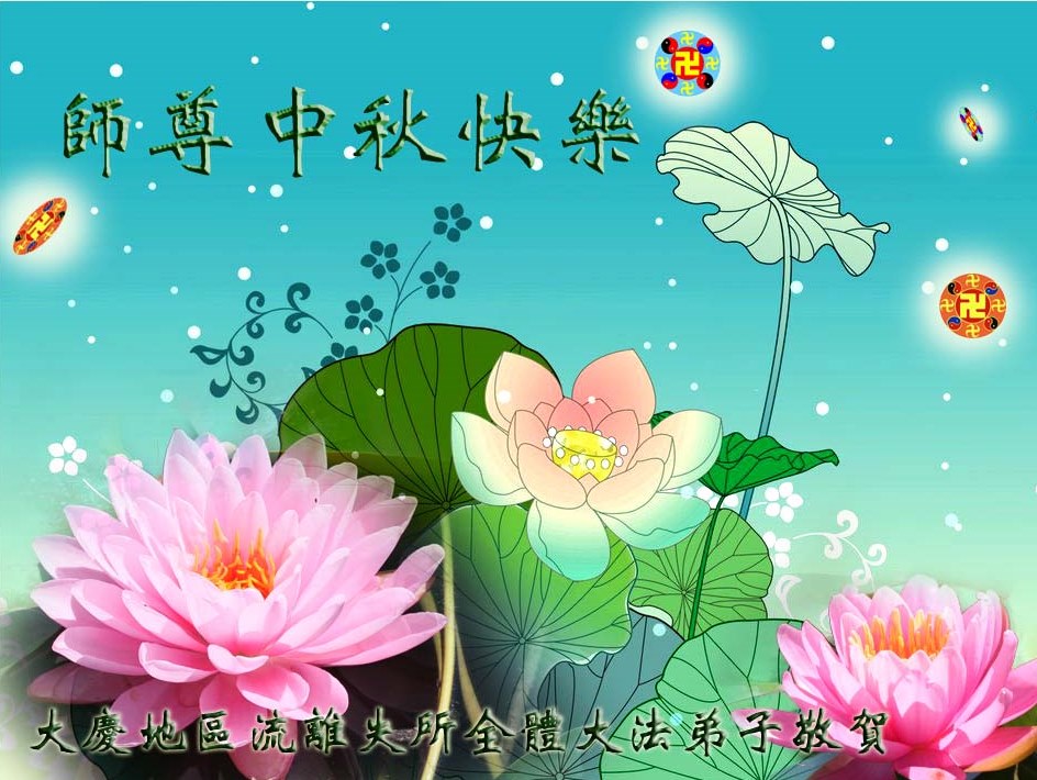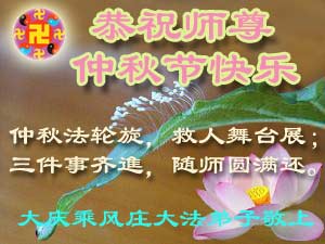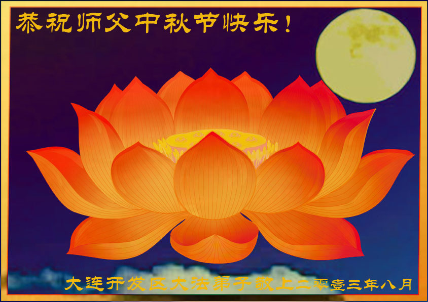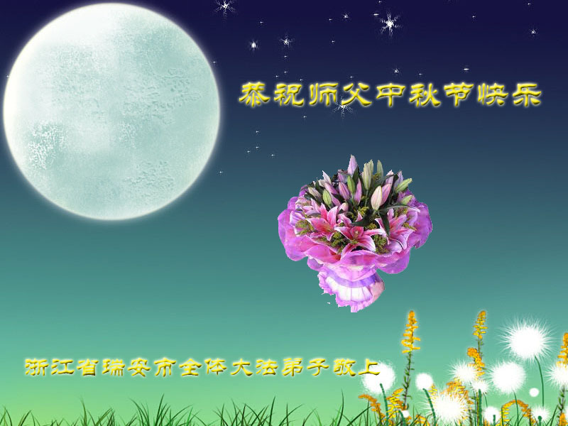 我们庆幸自己能够有如此殊荣,向远隔重洋的李大师恭祝中秋节快乐,向伟大慈悲的李大师献上我们永远的感恩!冥冥之中似乎等待了千万年,直到我们了解了大法的真相,做了“三退”,我们才如梦方醒,从中共邪党蛊惑欺骗的漩涡中跳了出来,原来自己一直以来挣扎于沼泽地中苦苦等待的就是这个!我们明白了怎样做人,怎样生活,心中充满了希望与阳光!我们由衷的感恩李大师!感恩李大师救度了我们!