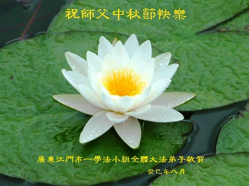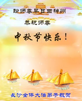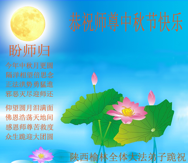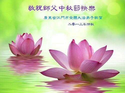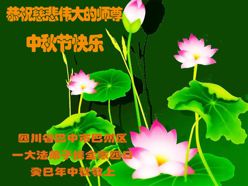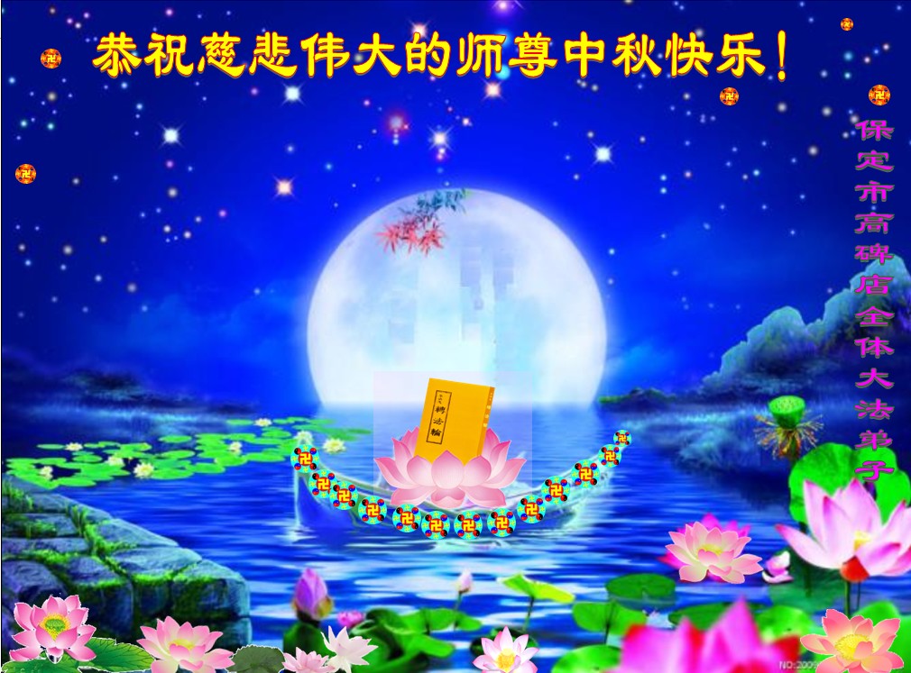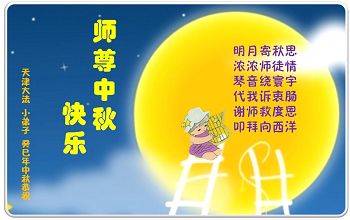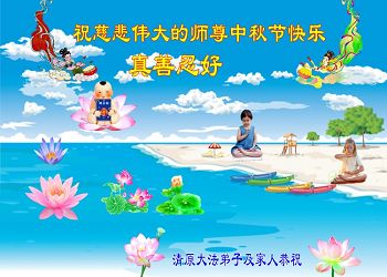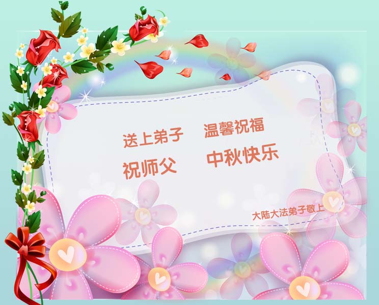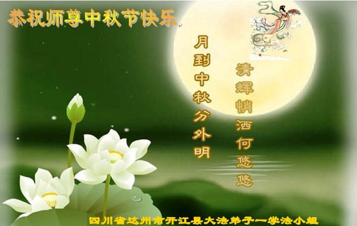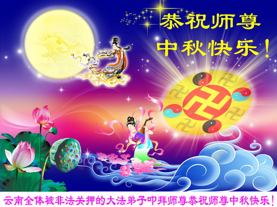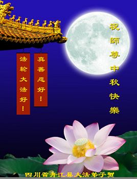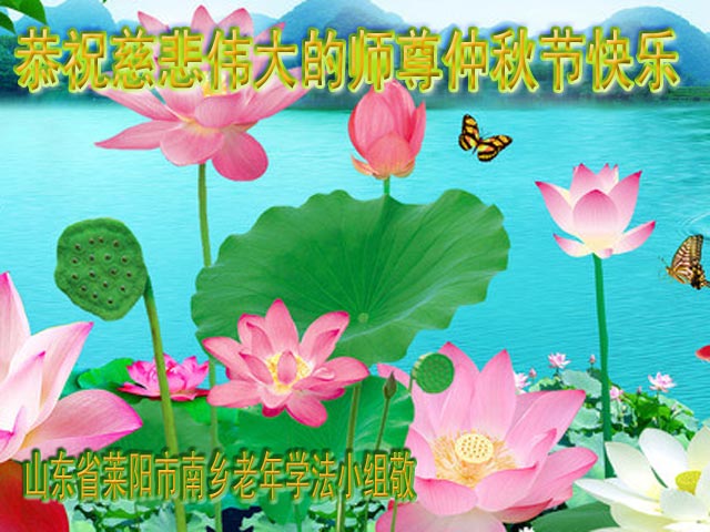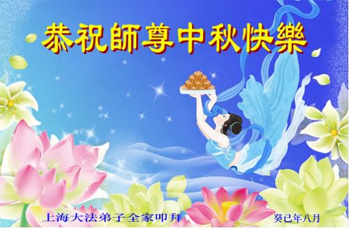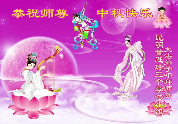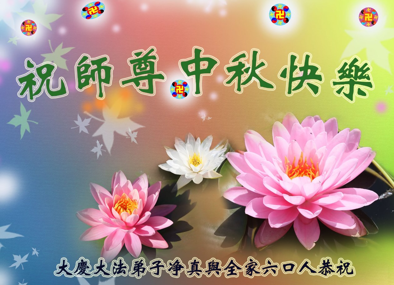 我们庆幸自己能够有如此殊荣,向远隔重洋的李大师恭祝中秋节快乐,向伟大慈悲的李大师献上我们永远的感恩!冥冥之中似乎等待了千万年,直到我们了解了大法的真相,做了“三退”,我们才如梦方醒,从中共邪党蛊惑欺骗的漩涡中跳了出来,原来自己一直以来挣扎于沼泽地中苦苦等待的就是这个!我们明白了怎样做人,怎样生活,心中充满了希望与阳光!我们由衷的感恩李大师!感恩李大师救度了我们!