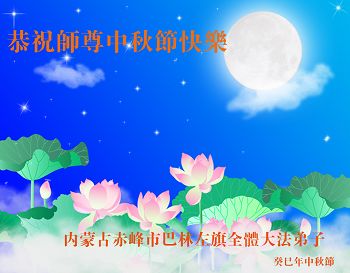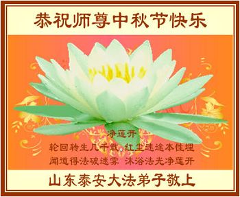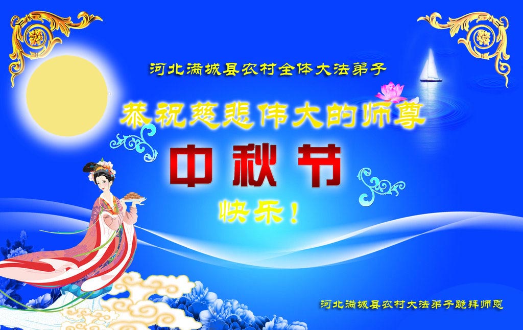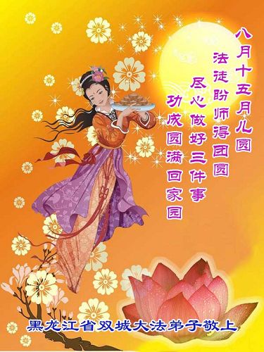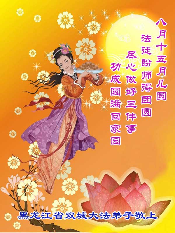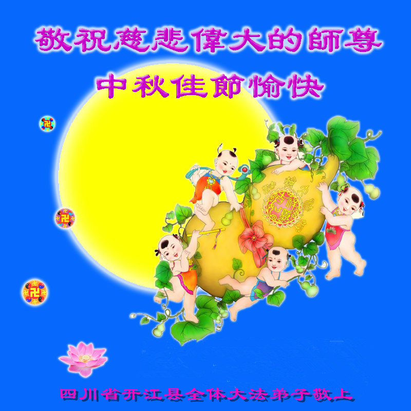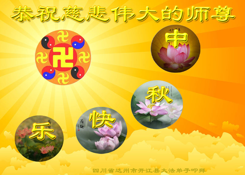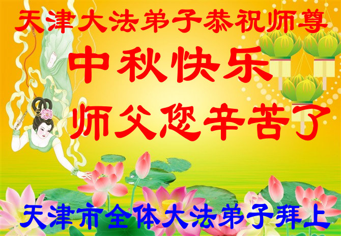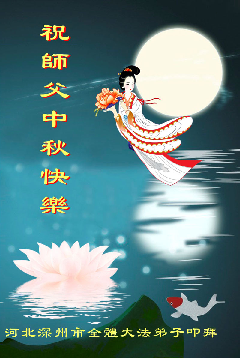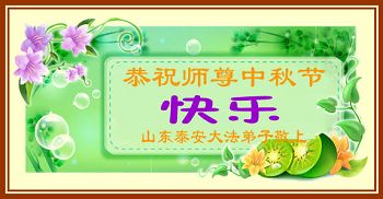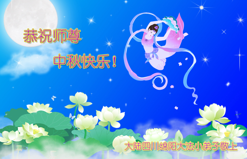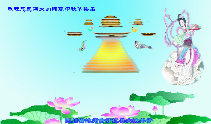 我们庆幸自己能够有如此殊荣,向远隔重洋的李大师恭祝中秋节快乐,向伟大慈悲的李大师献上我们永远的感恩!冥冥之中似乎等待了千万年,直到我们了解了大法的真相,做了“三退”,我们才如梦方醒,从中共邪党蛊惑欺骗的漩涡中跳了出来,原来自己一直以来挣扎于沼泽地中苦苦等待的就是这个!我们明白了怎样做人,怎样生活,心中充满了希望与阳光!我们由衷的感恩李大师!感恩李大师救度了我们!