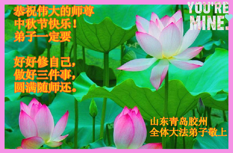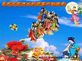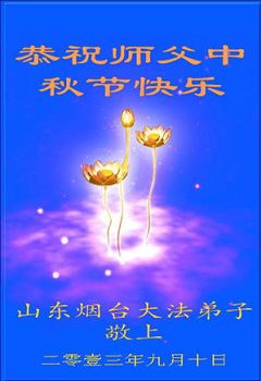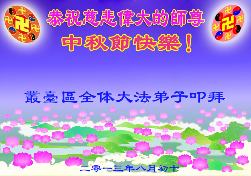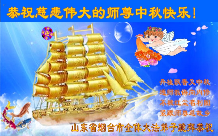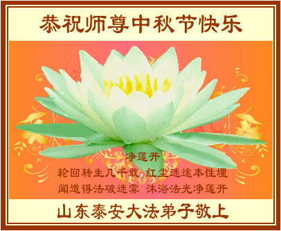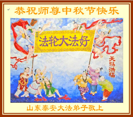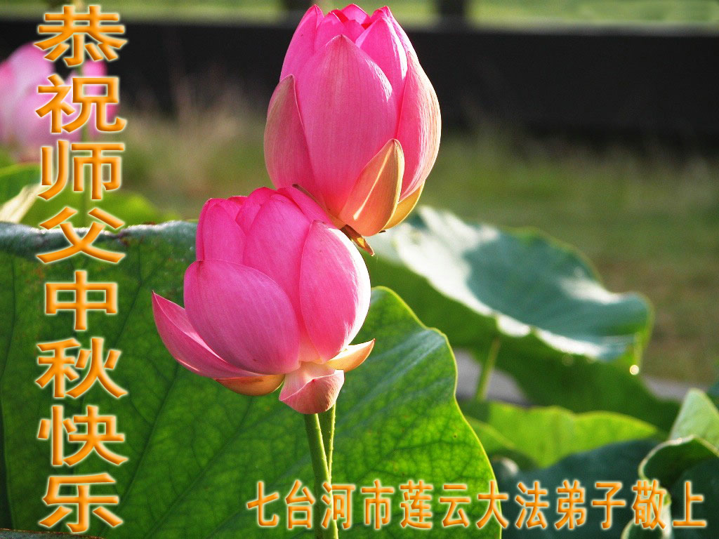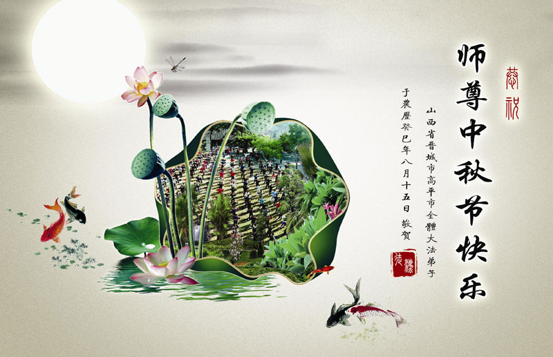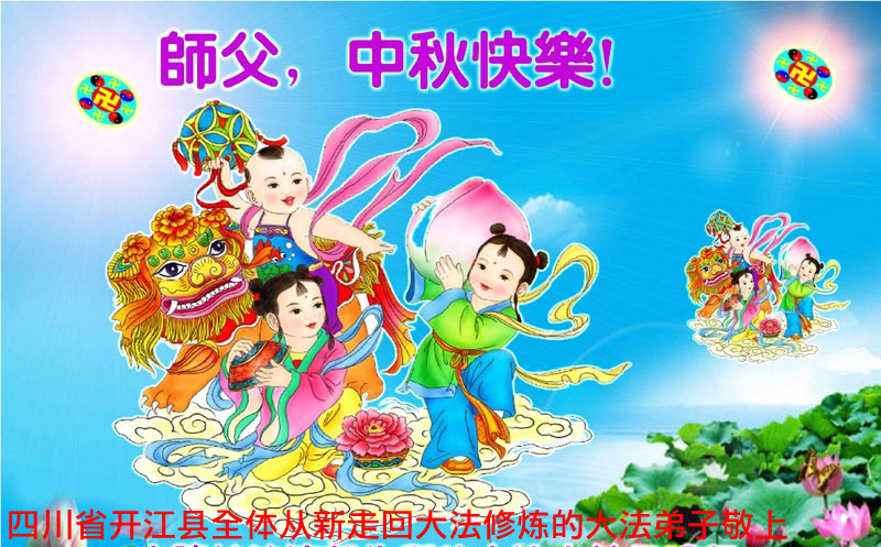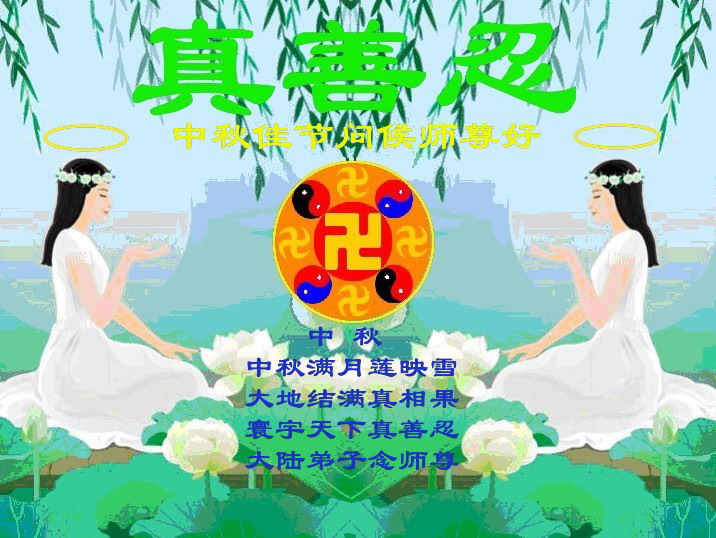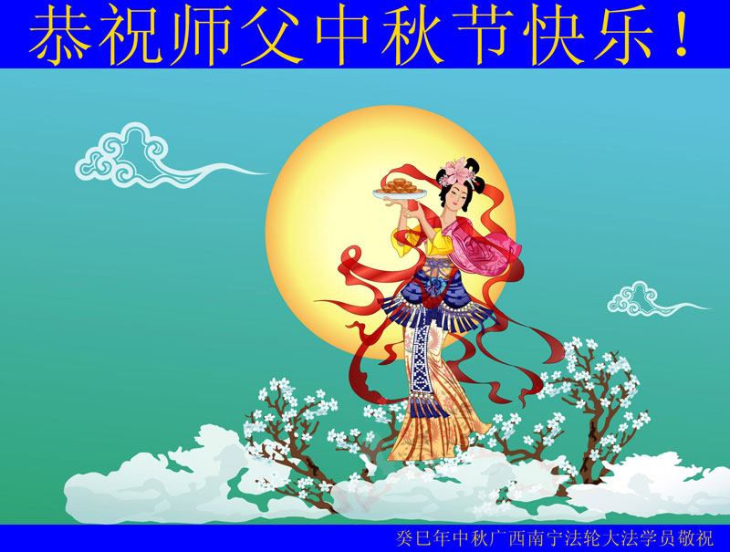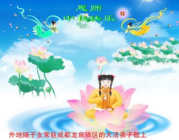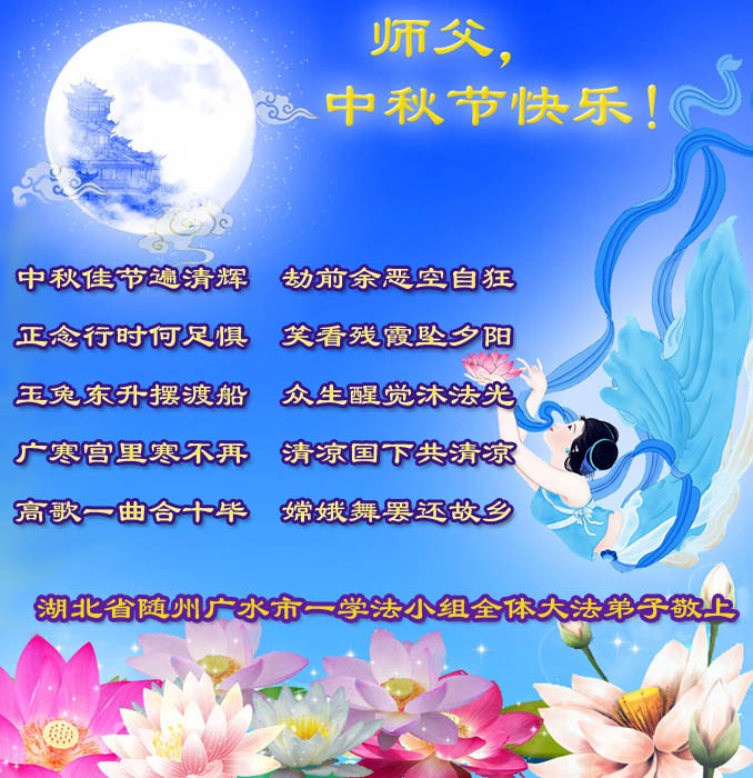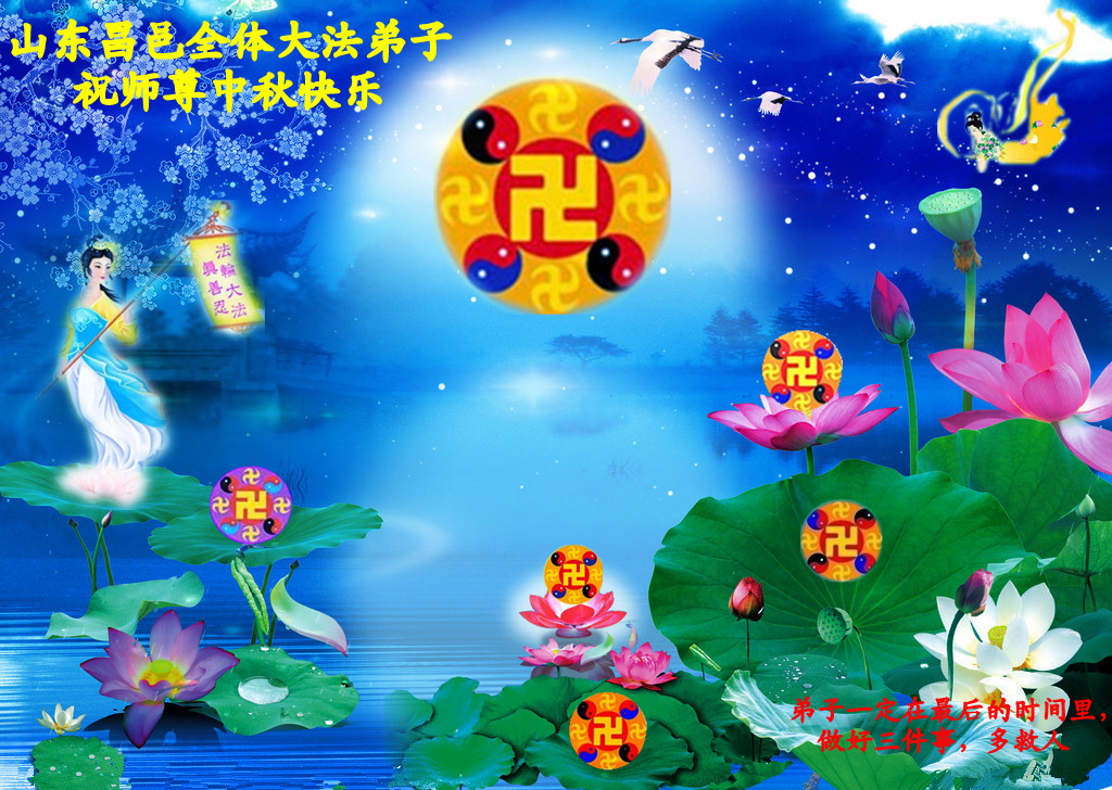 我们庆幸自己能够有如此殊荣,向远隔重洋的李大师恭祝中秋节快乐,向伟大慈悲的李大师献上我们永远的感恩!冥冥之中似乎等待了千万年,直到我们了解了大法的真相,做了“三退”,我们才如梦方醒,从中共邪党蛊惑欺骗的漩涡中跳了出来,原来自己一直以来挣扎于沼泽地中苦苦等待的就是这个!我们明白了怎样做人,怎样生活,心中充满了希望与阳光!我们由衷的感恩李大师!感恩李大师救度了我们!