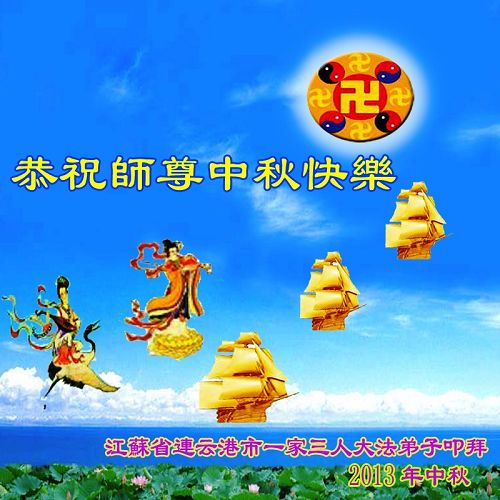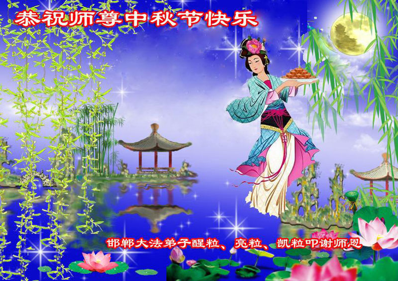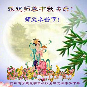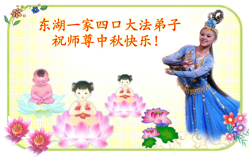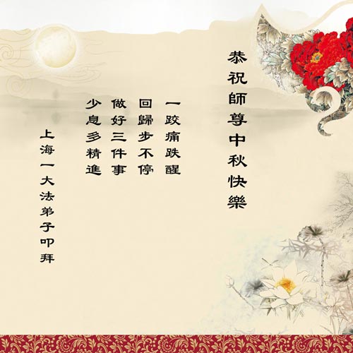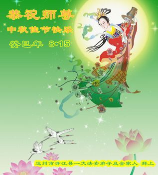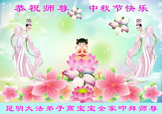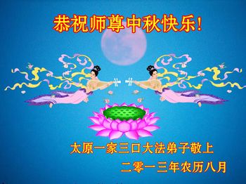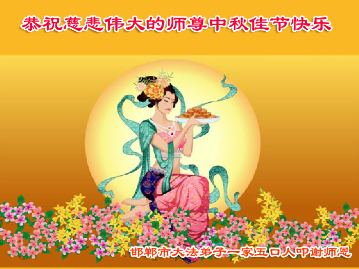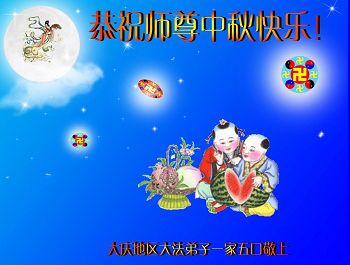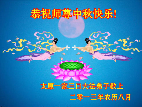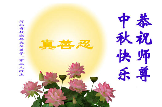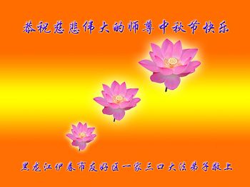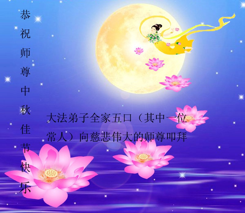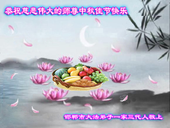 师尊您好:一年一度的中秋节又到了,在这佳节到来之际,我们全家三名大法弟子叩首跪拜师尊,