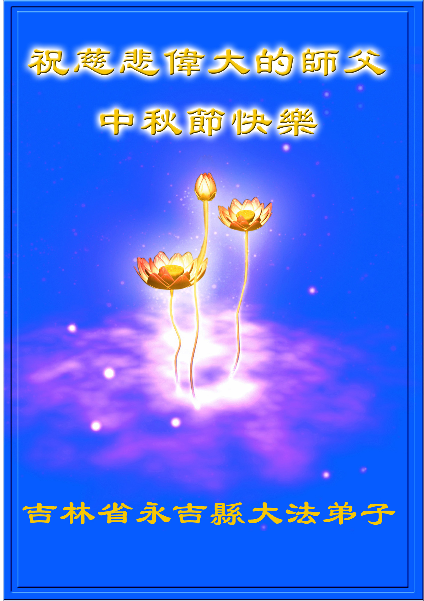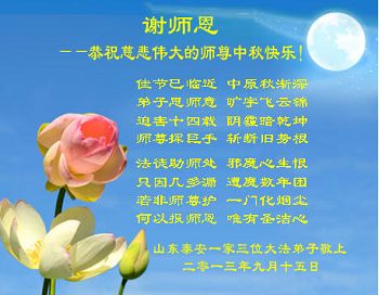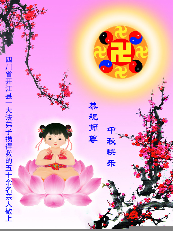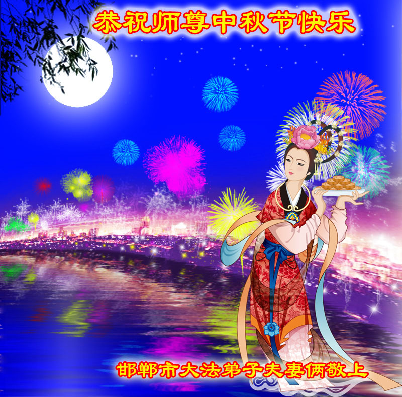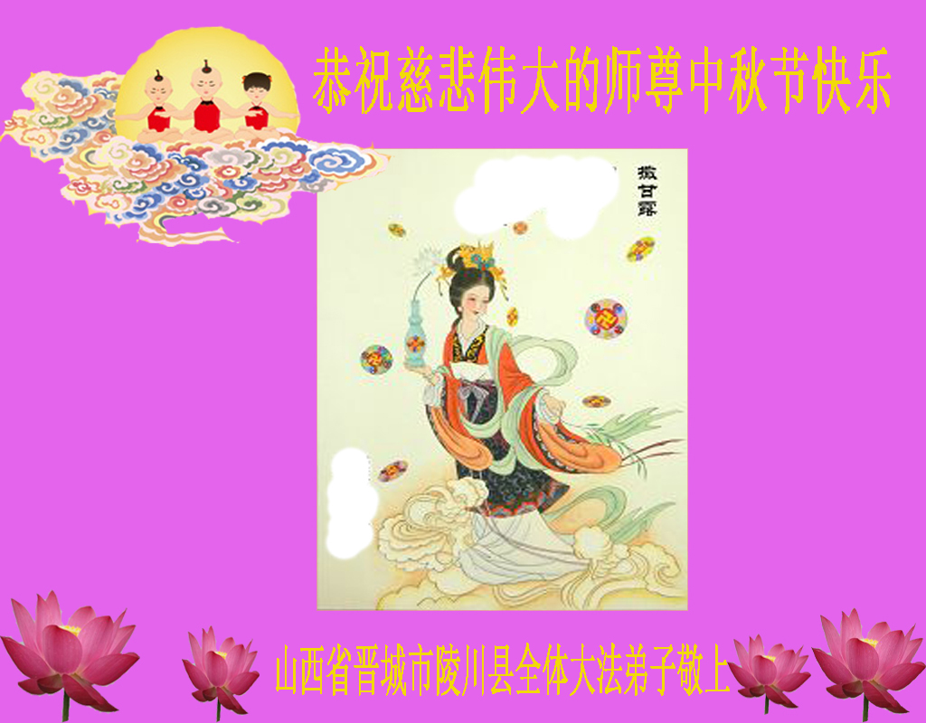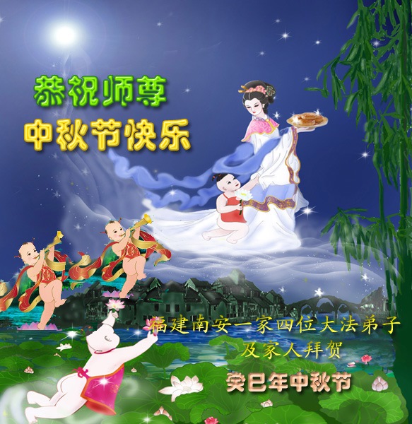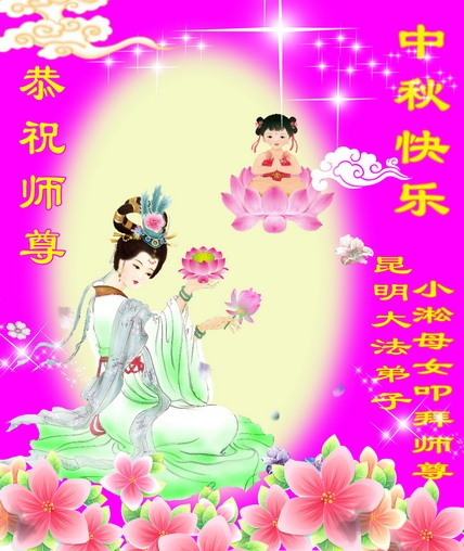 师尊您好:一年一度的中秋节又到了,在这佳节到来之际,我们全家三名大法弟子叩首跪拜师尊,