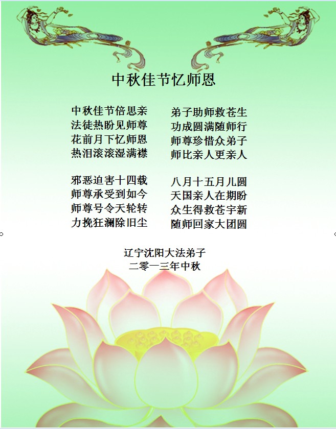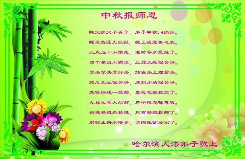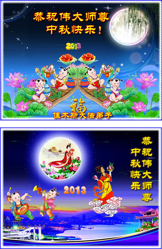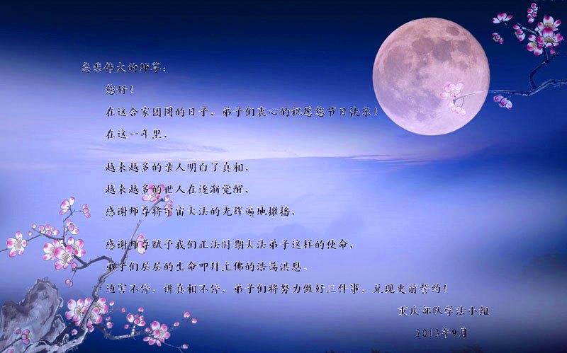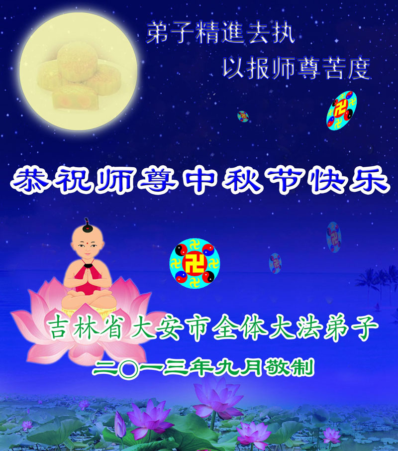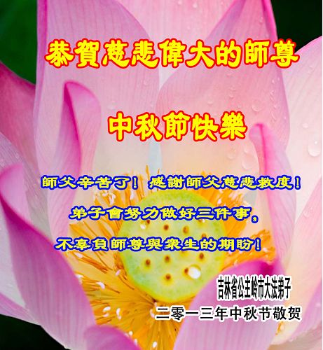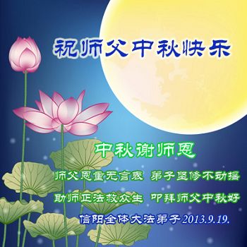 <英文版: http://en.minghui.org/html/articles/2013/9/19/142117.html>长春大法弟子恭祝师尊中秋好(21条)
