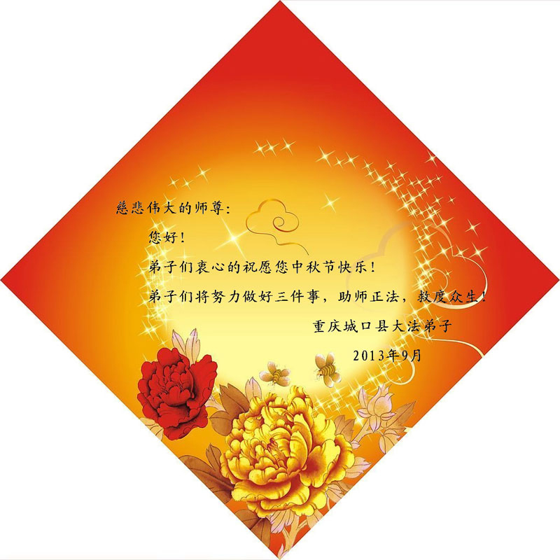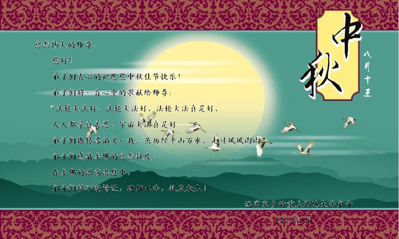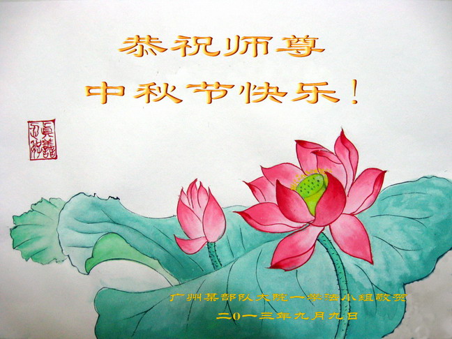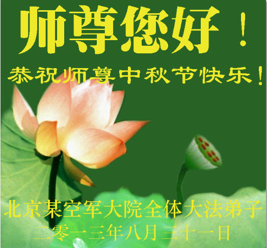 <英文版: http://en.minghui.org/html/articles/2013/9/19/142118.html>大陆军队大法弟子恭祝师尊中秋好