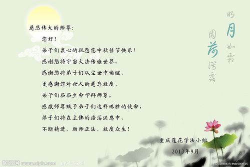 <英文版: http://en.minghui.org/html/articles/2013/9/20/142246.html>恭祝李洪志师父中秋快乐!