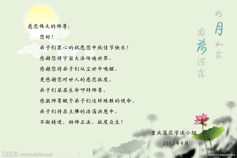 恭祝师尊2013年中秋快乐!家乡大法弟子想念您!