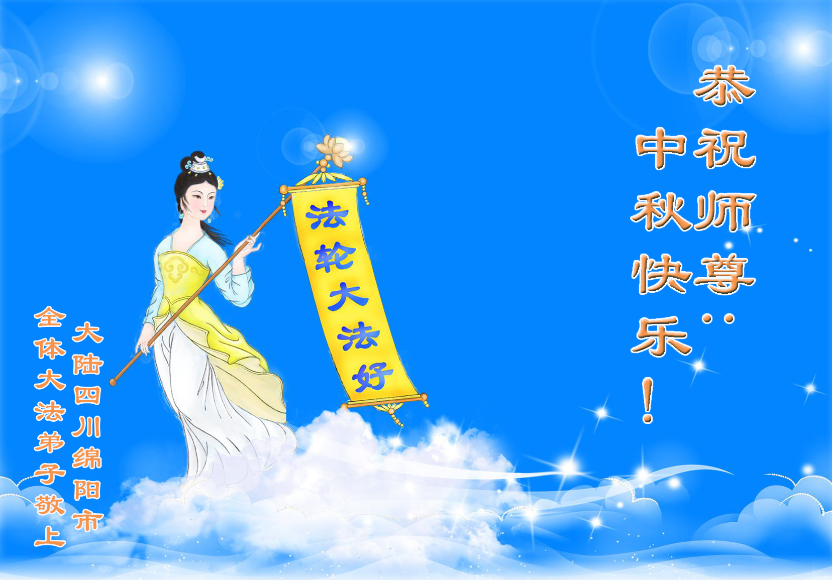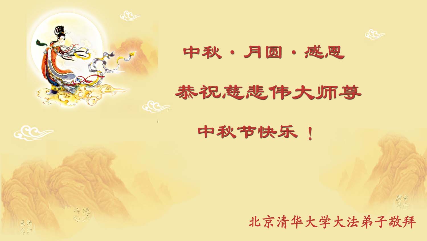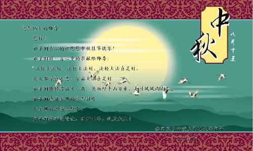 中秋节快到了,我们向慈悲伟大的师尊致以中秋的问候:师尊您辛苦了!我们一定按照师尊要求的,努力做好三件事,在剩下不多的时间内修好自己多救人,圆满随师还。