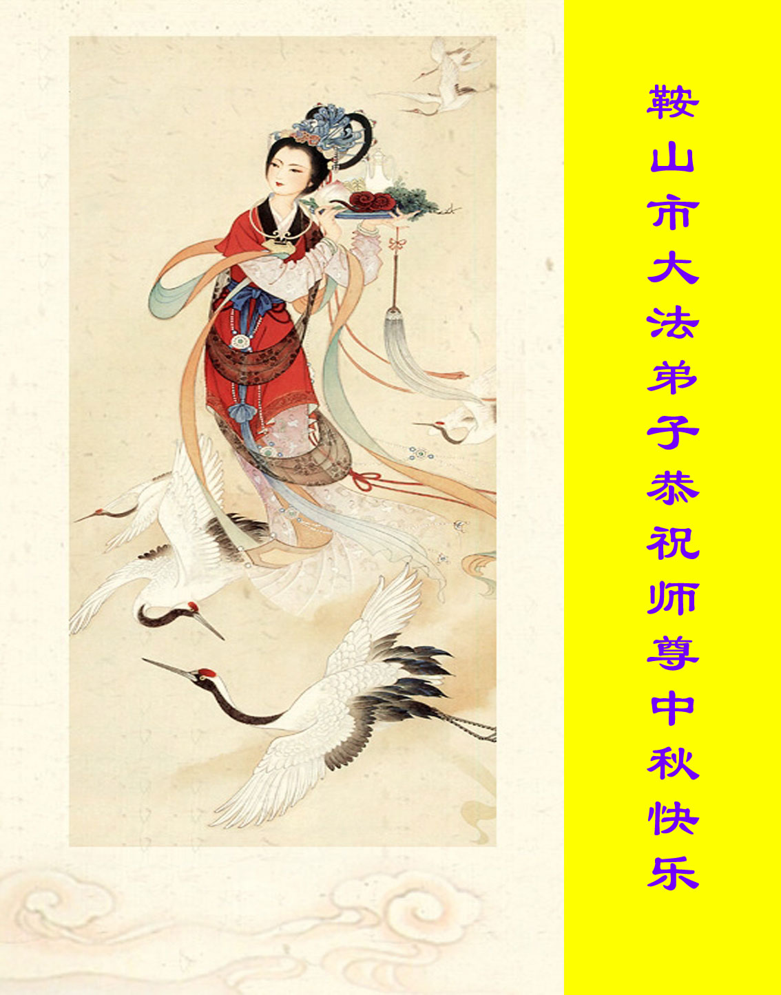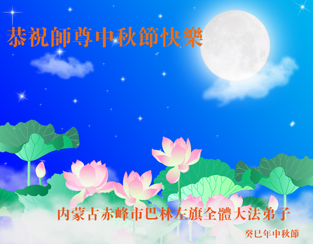 癸巳年中秋节即将到来,大法弟子向慈悲伟大的师尊问好,并祝师尊中秋节快乐。感谢师尊的慈悲苦度,向师尊合十叩拜。大法弟子谨遵师尊的教诲,越到最后更要精進实修,做好三件事,走好最后的路。