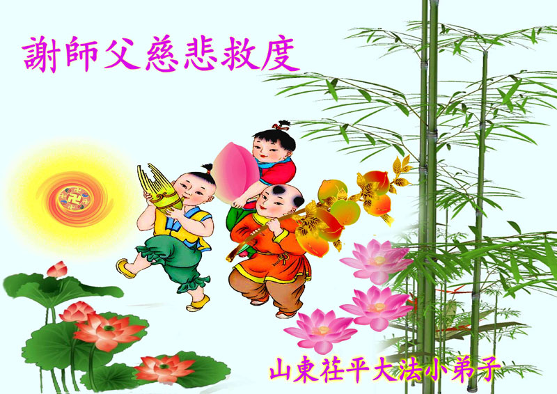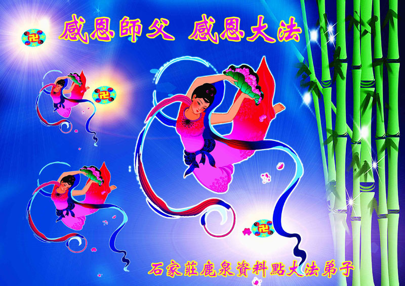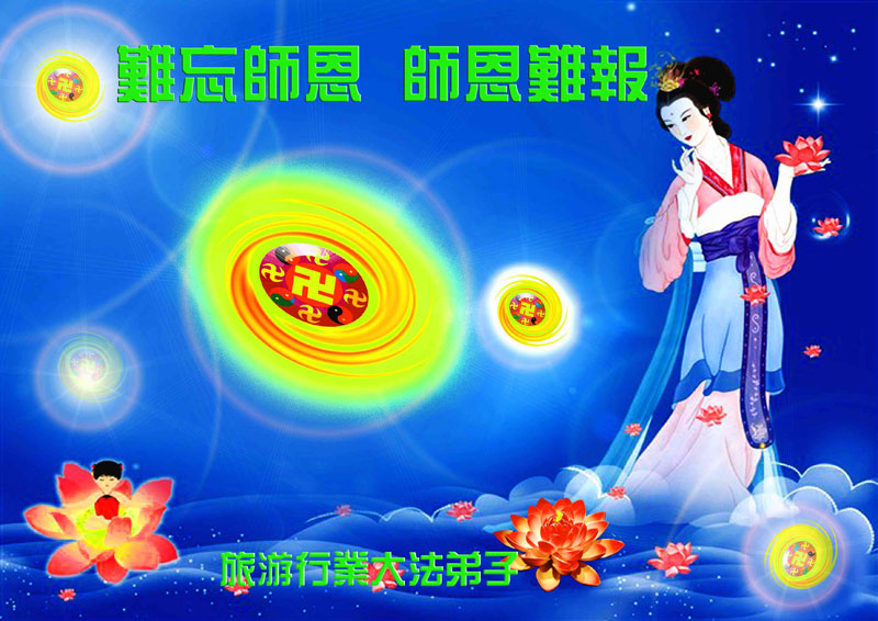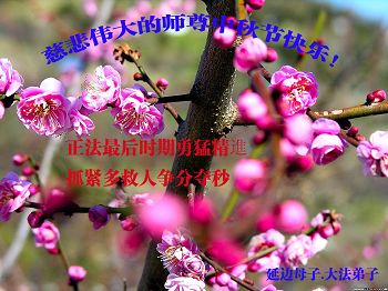 感谢慈悲的李大师救度我们!面对李大师的慈悲救度我们无以为报,也只有在这传统的佳节之日向伟大慈悲的李大师敬献自己衷心的感谢,李大师您辛苦了!您为救度众生辛苦了!我们将永远的感恩伟大慈悲的李大师,感恩真善忍宇宙大法!