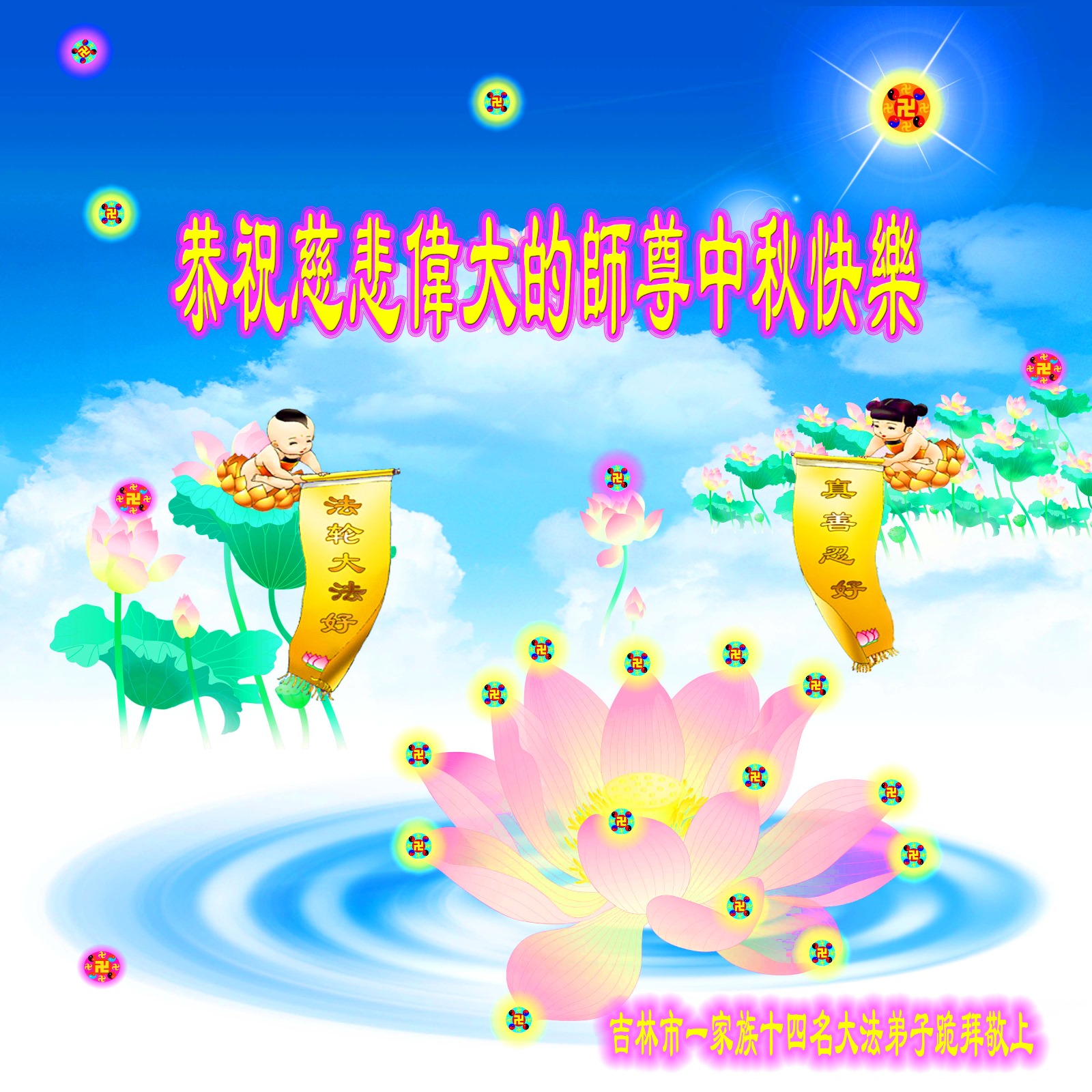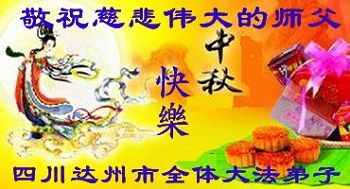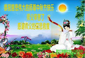 在中国传统的中秋佳节来临之际,我们八十多位明真相得福报的生命感恩大法、感恩慈悲伟大师尊的救度与呵护!共同祝愿慈悲伟大的师尊中秋节快乐!