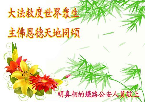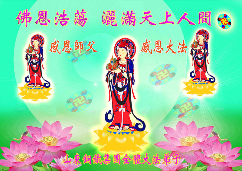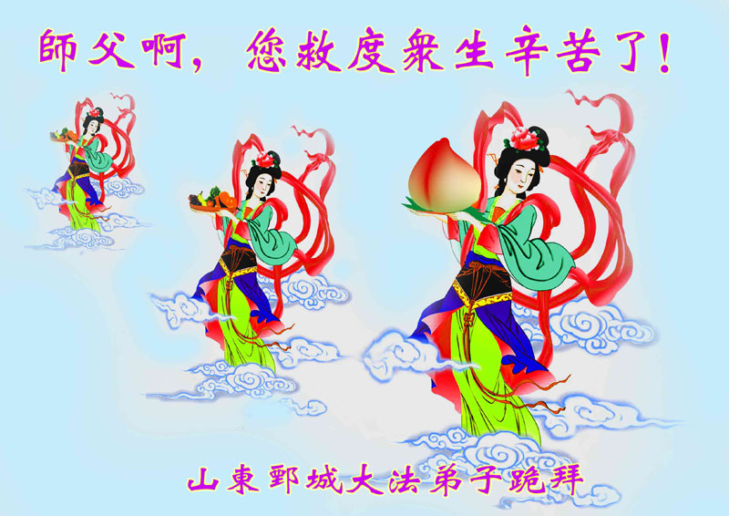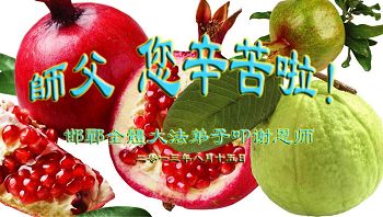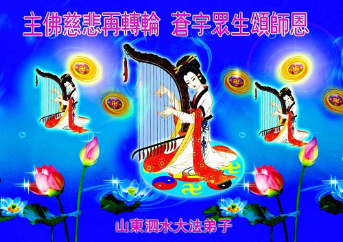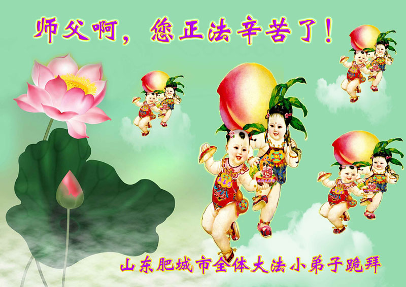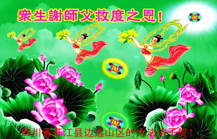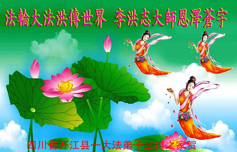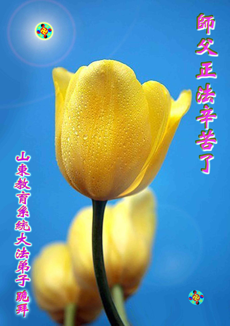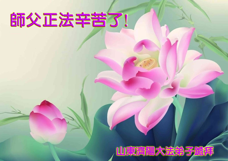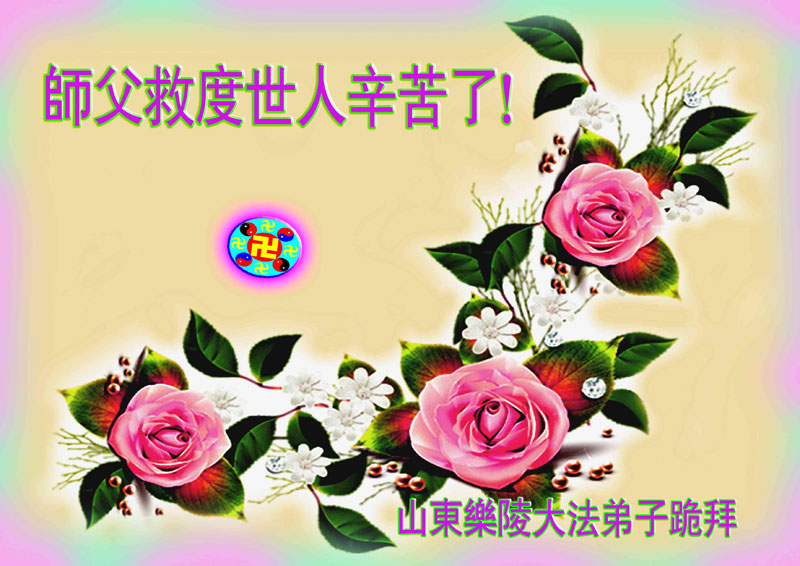 佳节到来,我们代表所有亲朋好友以及明白法轮大法真相的世人向远在国外的李大师致以崇高的谢意!感恩李大师对我们的慈悲救度!我们已在心中暗下决心,面对李大师的慈悲救度无以为报,唯有向世人讲清法轮大法的美好,让世人远离中共邪党,能够有一个進入美好未来的机会,在这万古难遇的法轮大法洪传时期近一点微薄之力,不辜负伟大慈悲的李大师对我们的慈悲救度。我们无限的感恩李大师!