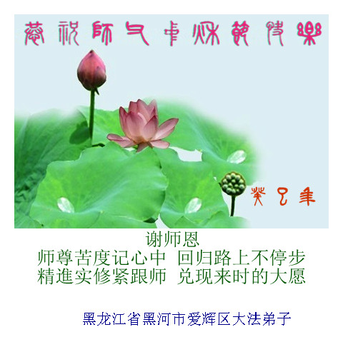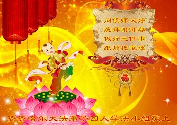值此佳节到来之际,我们代表所有的亲朋好友以及明白法轮大法真相的世人感谢李大师慈悲救度!并祝伟大慈悲的李大师节日快乐!同时也期盼伟大慈悲的李大师早日回国与众法轮大法修炼者们团聚,我们也渴望有那份殊荣亲睹李大师的慈悲风采!跪谢慈悲的李大师!
