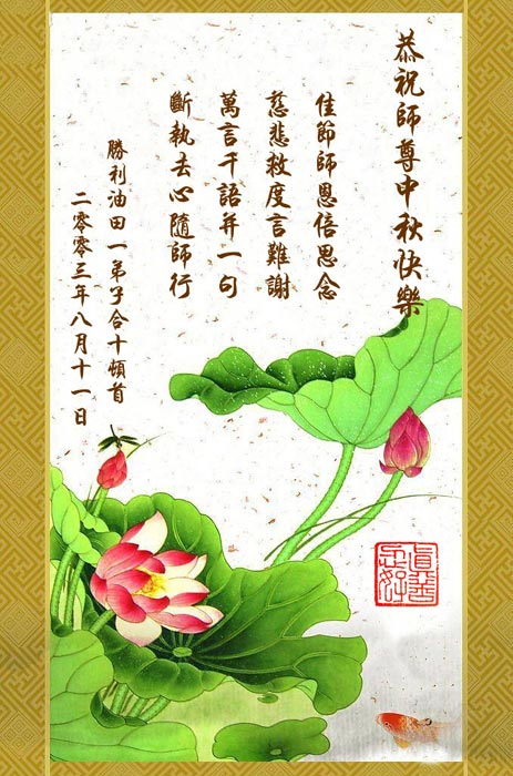 恭祝为众生能得救千辛万苦操劳的慈悲伟大的师尊中秋快乐!