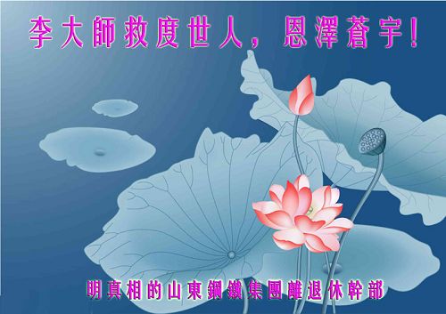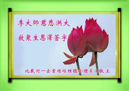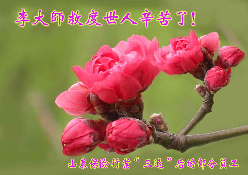 尊敬的李大师您好!我们代表所有的亲朋好友感谢您对我们的慈悲救度,如果不是您让您的弟子给我们讲真相,我们现在还蒙在鼓里,受着邪党的愚弄,最后作了邪党的牺牲品,堕入万劫不复的境地,永无出头之日!请李大师放心,我们一定要将邪党的丑行曝光于天下,让更多的民众看清邪党的丑恶嘴脸,让善良的人们都能明白真相得救度。跪谢李大师救度大恩!