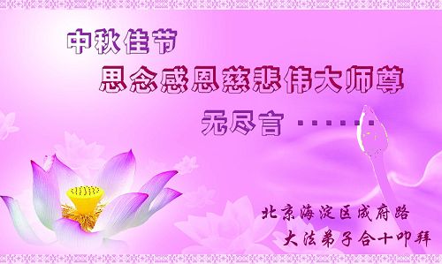 每逢佳节倍思亲,中秋月圆之时,北京海淀成府路大法弟子向慈悲伟大的师尊致以最崇高的敬意,并恭祝师父中秋节快乐!