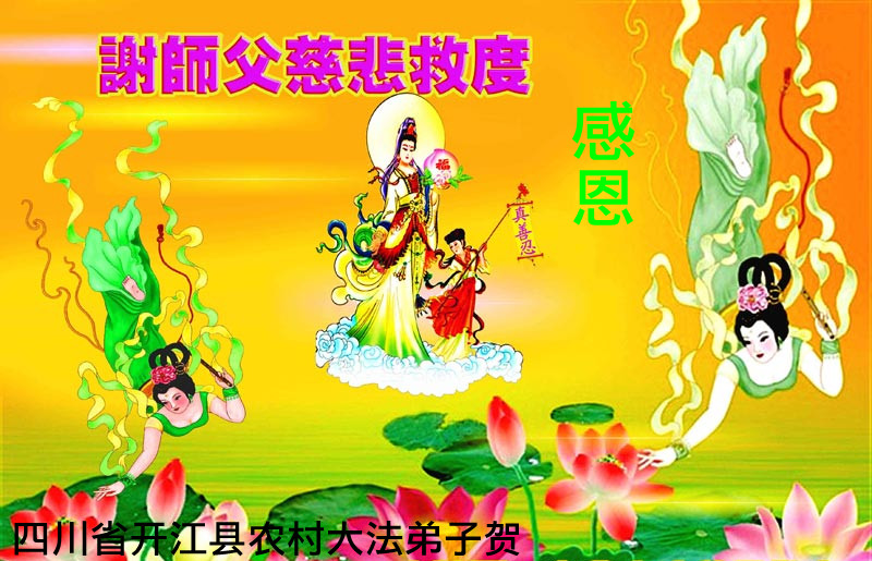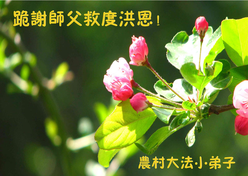 感谢伟大的李大师对我们的慈悲救度!我们代表所有的亲朋好友拜谢李大师救度大恩!在这浊世中,一个个法轮大法修炼者沐浴着宇宙真理之光,遍及人世间的每一个角落,所到之处,驱散一切黑暗,破除一切谎言,世人的身心得到净化,灵魂得以复苏,他们遵照李大师的教诲时时处处的与人为善,他们的大善之举在破除着中共邪党的一切谎言,使人类進入一个新天、新地、无比美好的世界!叩谢李大师救度洪恩!