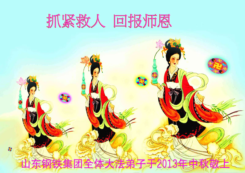 在这一年一度的团圆之日,我们向伟大慈悲的李大师敬献自己最诚挚的敬意!感谢李大师对我们的慈悲救度!如若不是您让您的弟子向世人讲真相,不知会有多少的大陆子民成为中共邪党的陪葬品!我们庆幸、自豪,生逢这伟大的时代,赶上李大师慈悲救度众生,给了我们得救的机会!再次感谢慈悲的李大师,永远的感恩李大师,感恩真善忍宇宙大法!