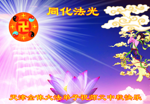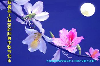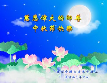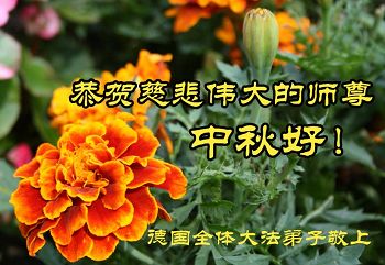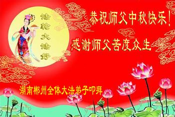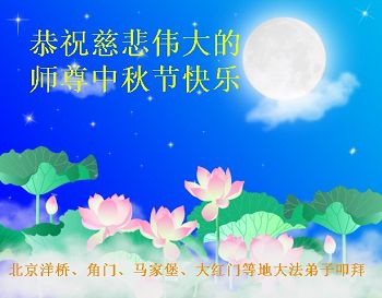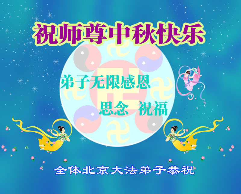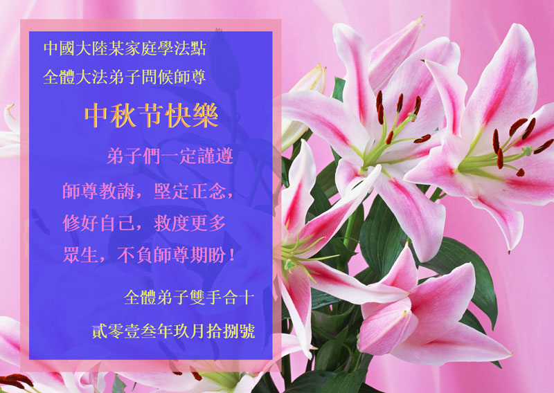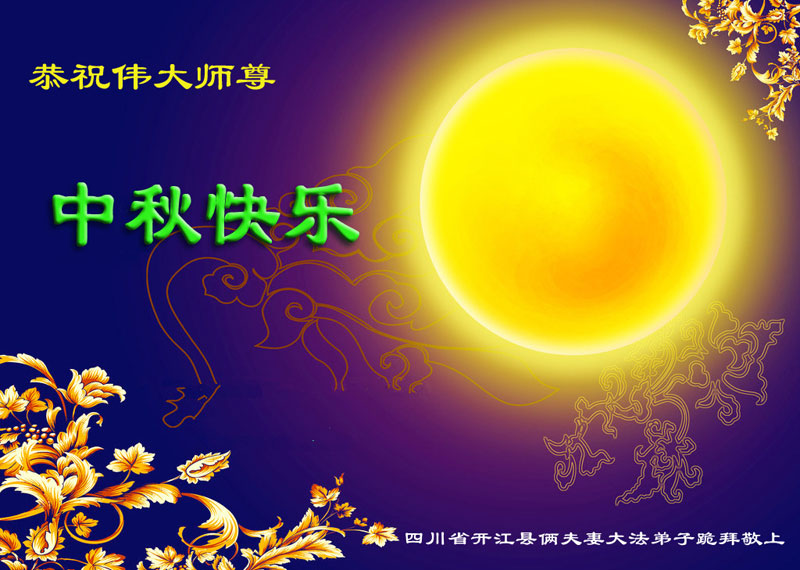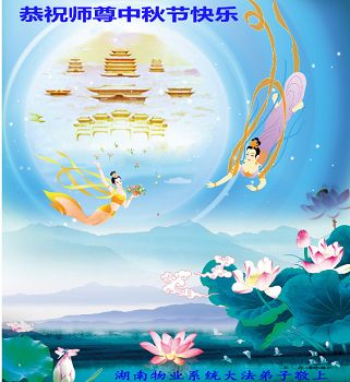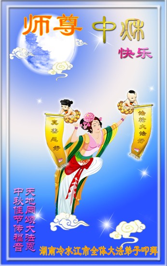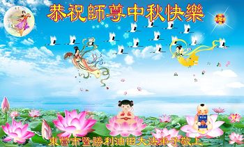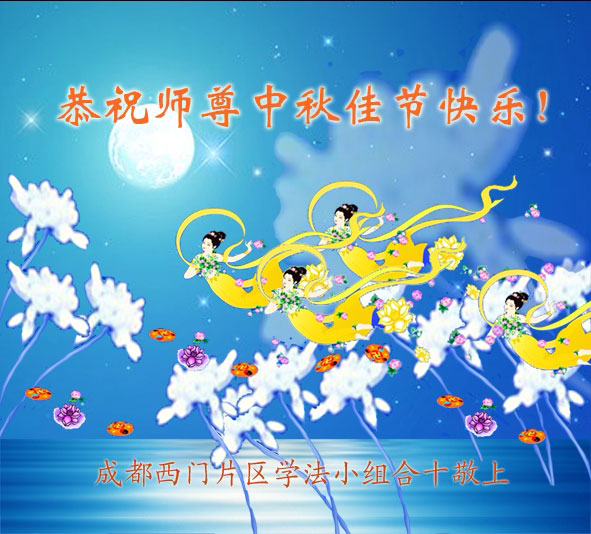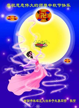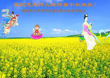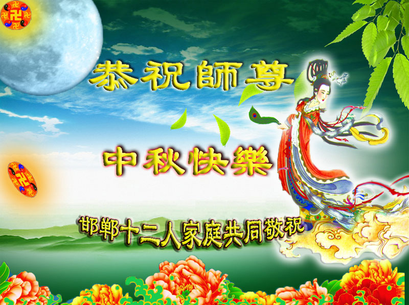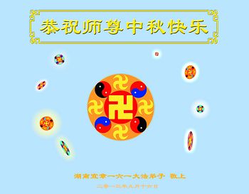 尊敬的师父,您好!一年一度的中秋佳节再度来临了。法国大法弟子在这象征阖家团聚的节日里向慈悲伟大的师父问好!