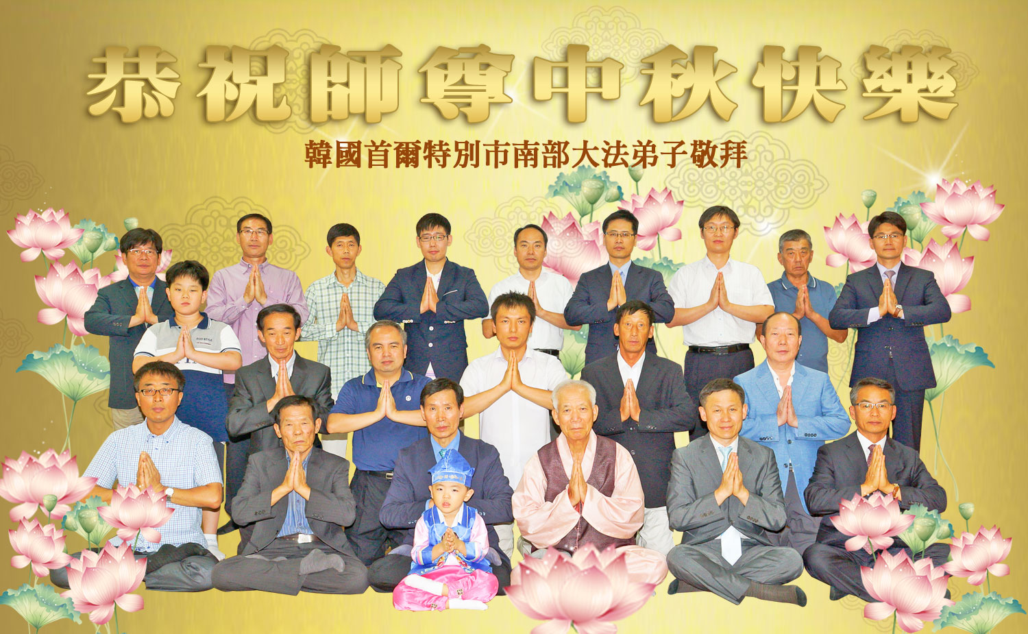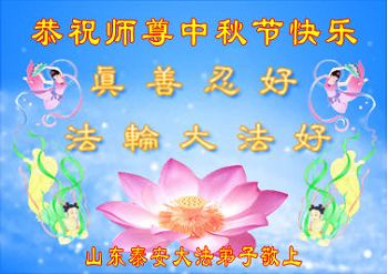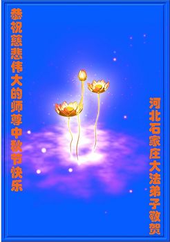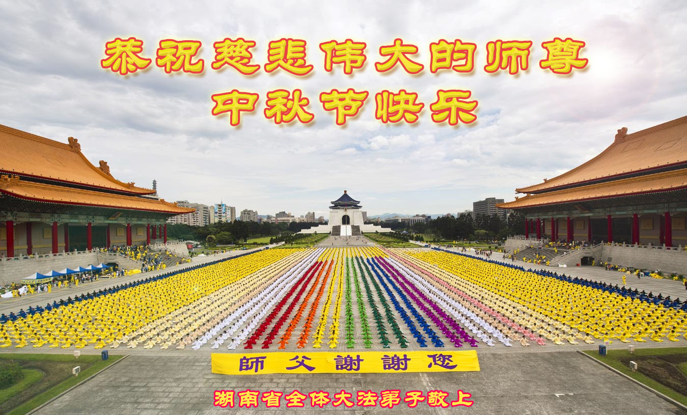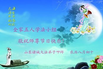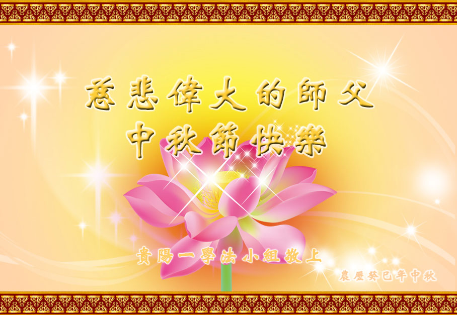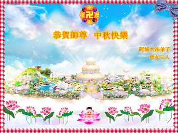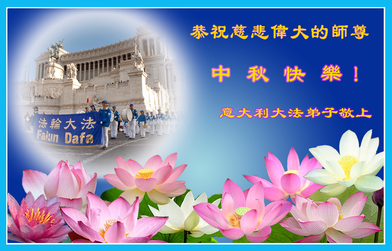 尊敬的师父,您好!一年一度的中秋佳节再度来临了。法国大法弟子在这象征阖家团聚的节日里向慈悲伟大的师父问好!