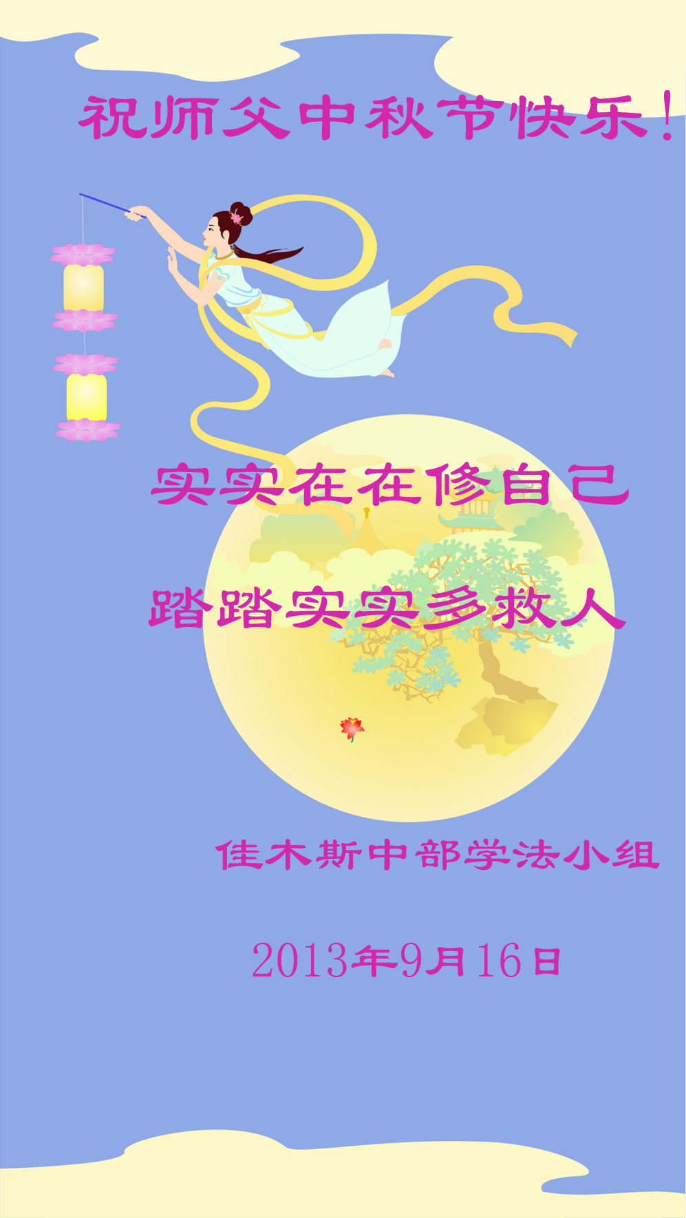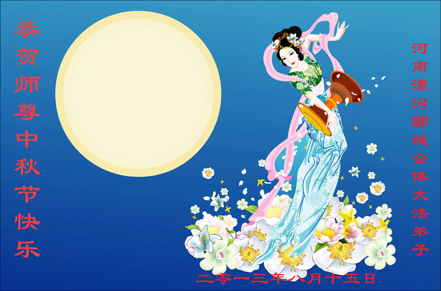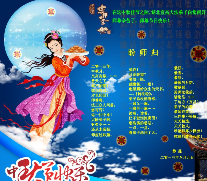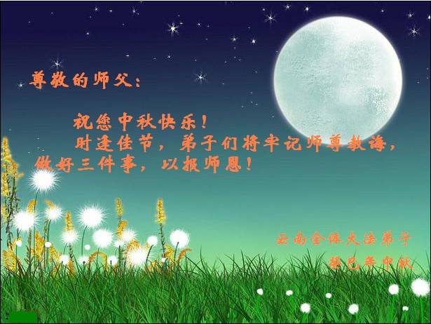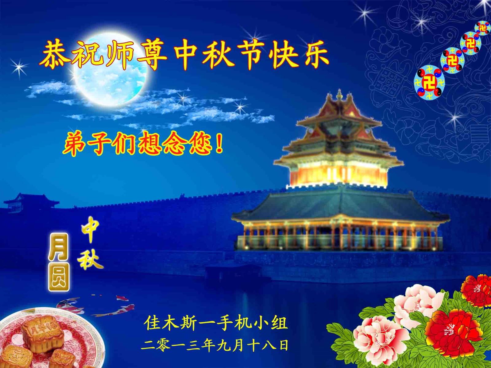 <英文版: http://en.minghui.org/html/articles/2013/9/20/142238.html>新学员恭祝师尊中秋好