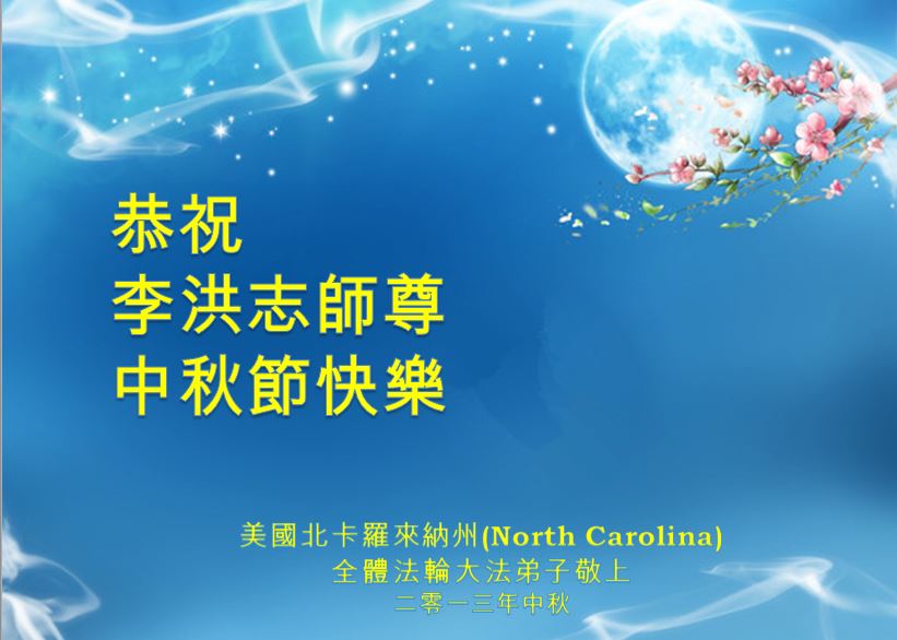 美国北卡罗来纳州全体大法弟子恭祝师尊中秋快乐。望全体同修共同精進!