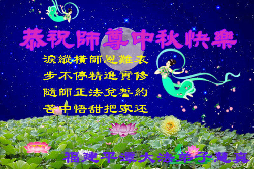 师父您好,不觉之中又是中秋夜了,弟子和其他同修想念您!希望我们能够更快的放下人念人心,走出旧宇宙为私为我,执著自我的执著,兑现誓约,承当救度众生重任,助师正法。在做好师父交托的三件事中走正大法弟子的路。弟子谢师恩!