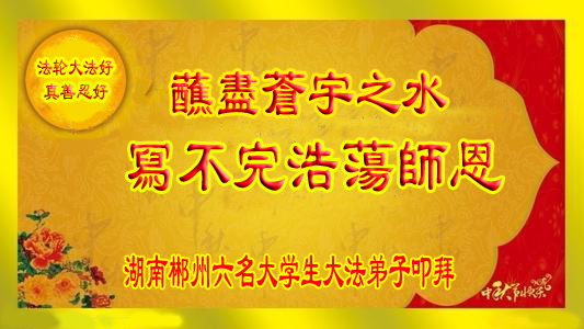 谢谢师尊用无量慈悲和大智慧延续了地球的时间,我们才得以在末劫之末走入大法修炼。请师父放心,弟子们会珍惜这一切。