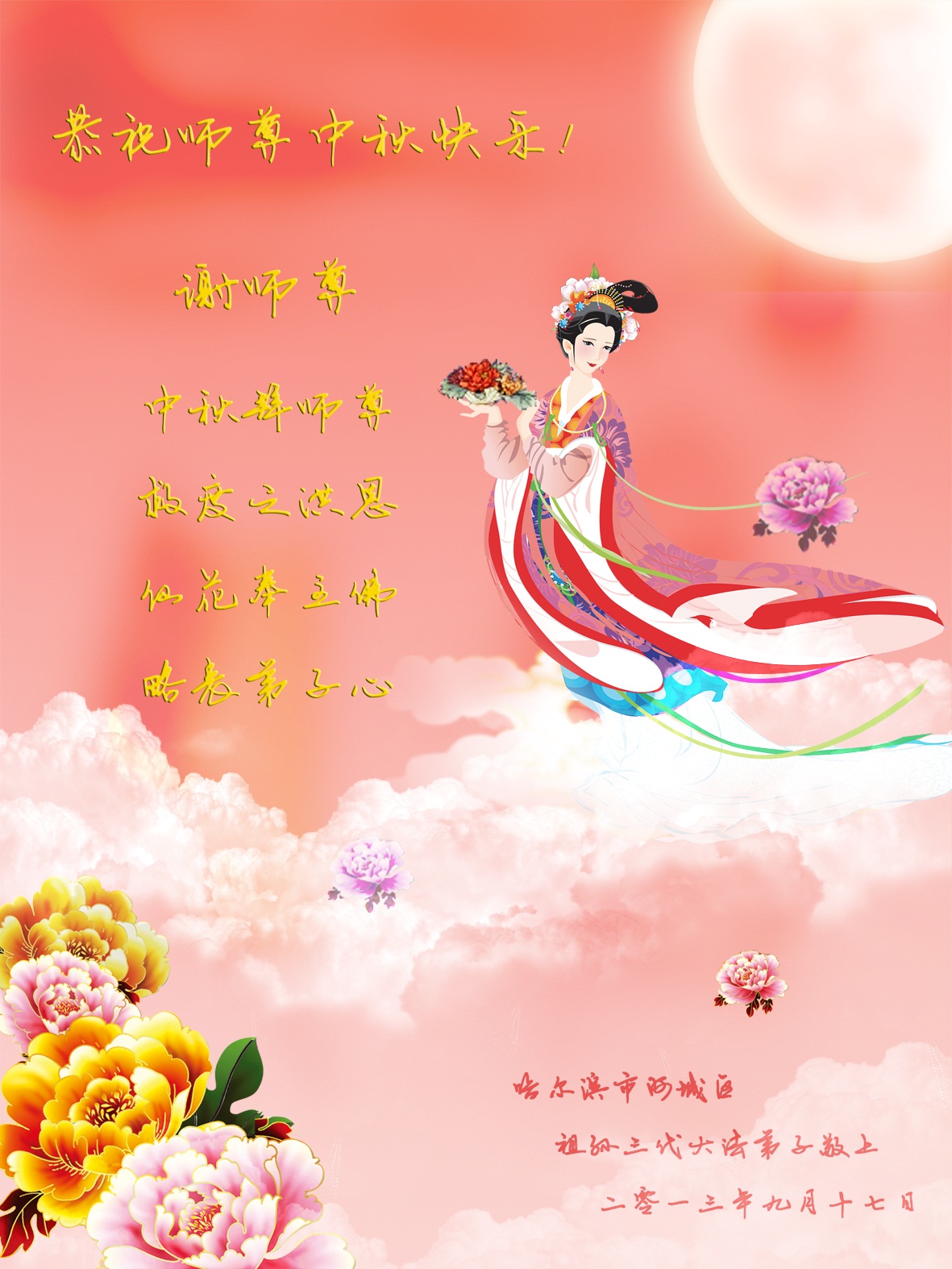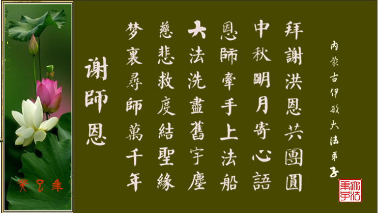 | 谢师恩 中秋佳节月光华 慈悲祥瑞漫天下 |