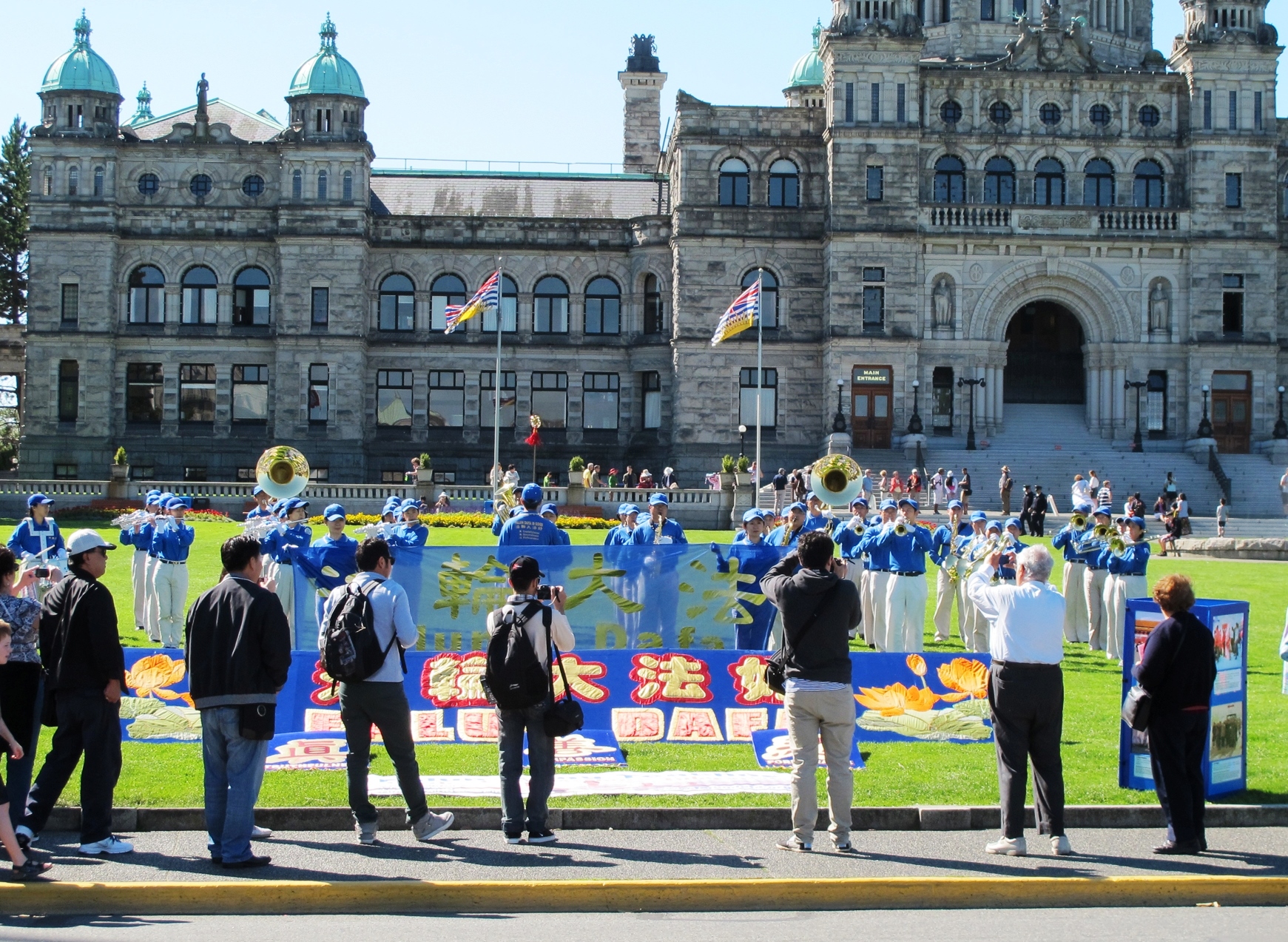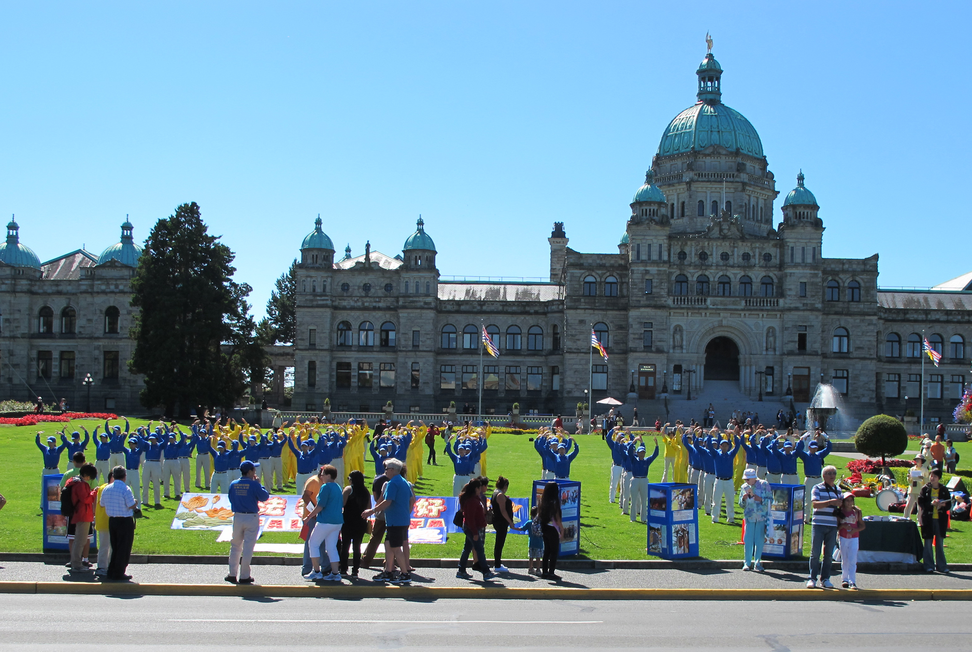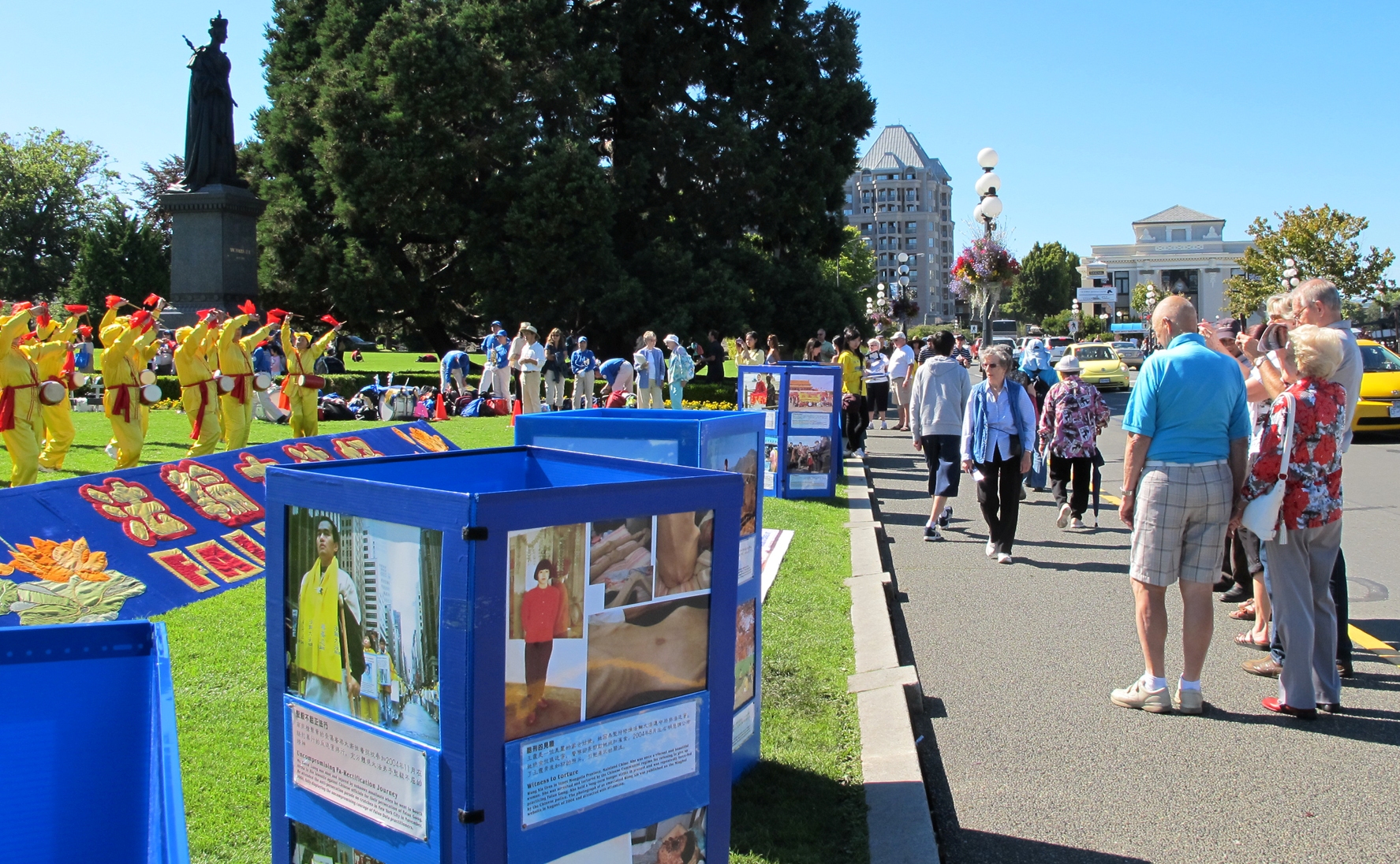 维多利亚市是加拿大卑诗省省府所在地,和温哥华隔海相望,是一个旅游胜地。法轮功学员的活动吸引很多当地民众和游客。