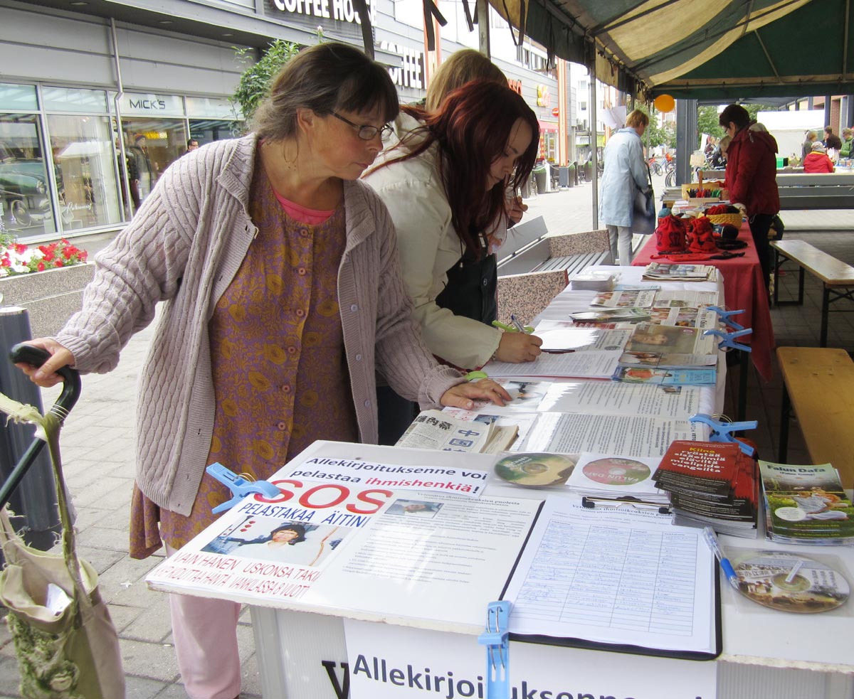活动结束前,一位母亲带着两个孩子经过,看到法轮功真相后感到非常气愤,说道:“活摘器官是这个星球上最邪恶的事情”,当知道本地居民法轮功学员金昭宇和金昭桓的母亲陈真萍,因为修炼法轮功被中共非法判刑八年,至今仍然在中国新乡市女子监狱遭受迫害时,她拥抱了这两姐妹,说:“一定要坚持呼吁下去,一定要坚强。”她签名后还要了法轮功的中文真相资料,要给她的中国朋友。