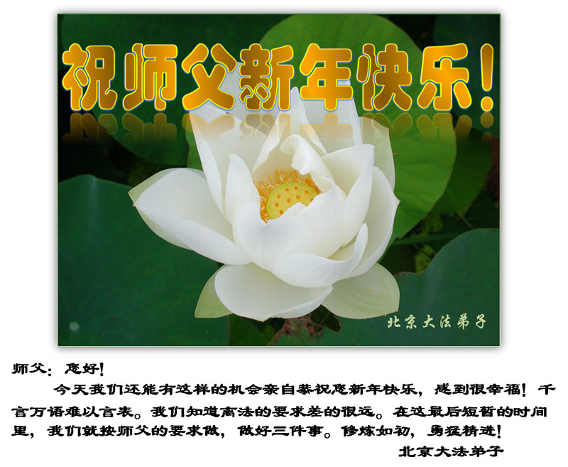 在新的一年里,弟子们一定学好法,多救人,做好三件事,圆满随师还,请师父放心!