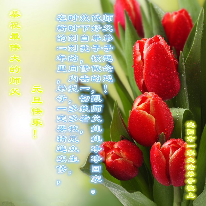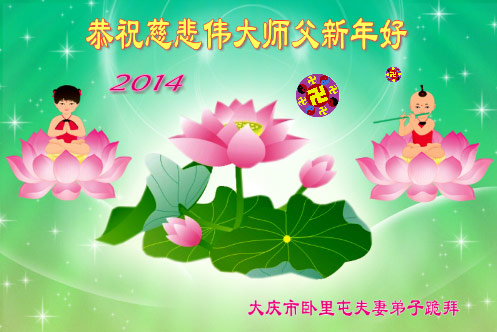 最后,我们一家四口以及我们在家乡抚顺市的十几位亲人再一次向慈悲伟大的师父说,师父您辛苦了!祝师父新年快乐!