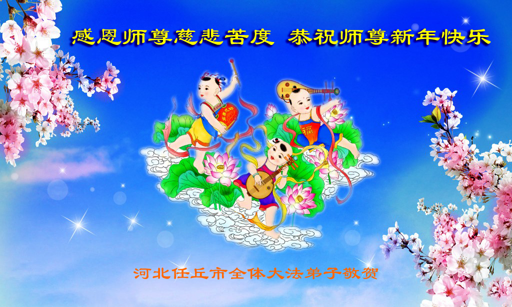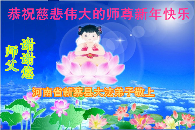 用尽千言万语表达不尽对慈悲伟大师尊的感恩。修炼路上师尊一路呵护,对弟子操碎了心。弟子只有勇猛精進,不迷恋红尘,做好三件事,才不愧对师尊史前的重托,不愧对众生的殷殷期盼。在新年到来之际,河南省濮阳地区、中原油田全体大法弟子恭祝慈悲伟大的师尊元旦快乐,对师尊说一声:您辛苦了!