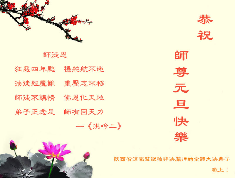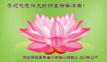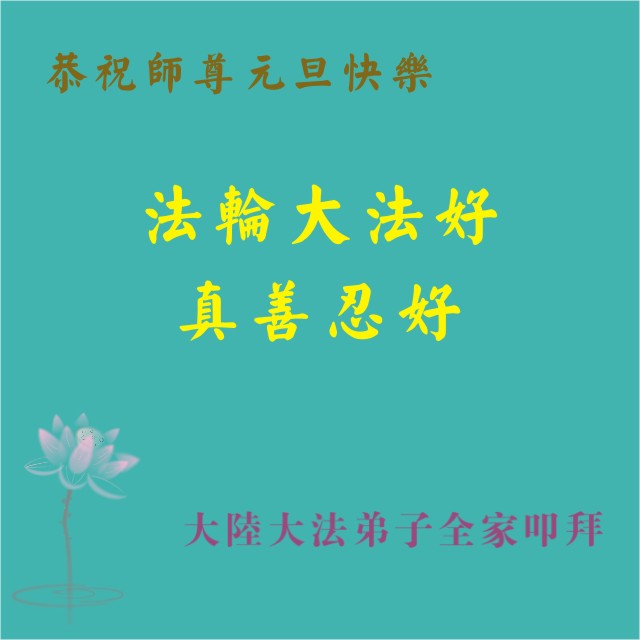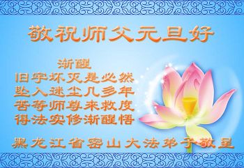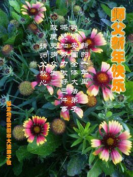 在最后的时刻,作为一名大法弟子,我还有很多事没有做好。无论如何,我坚修大法的心金刚不动,在有限的时间里我将努力找出自己的不足,修去它,克制自己,多多救人,真正让师尊少一份操劳,多一点欣慰。在这喜庆的日子里,我在远方遥祝师尊元旦快乐!
