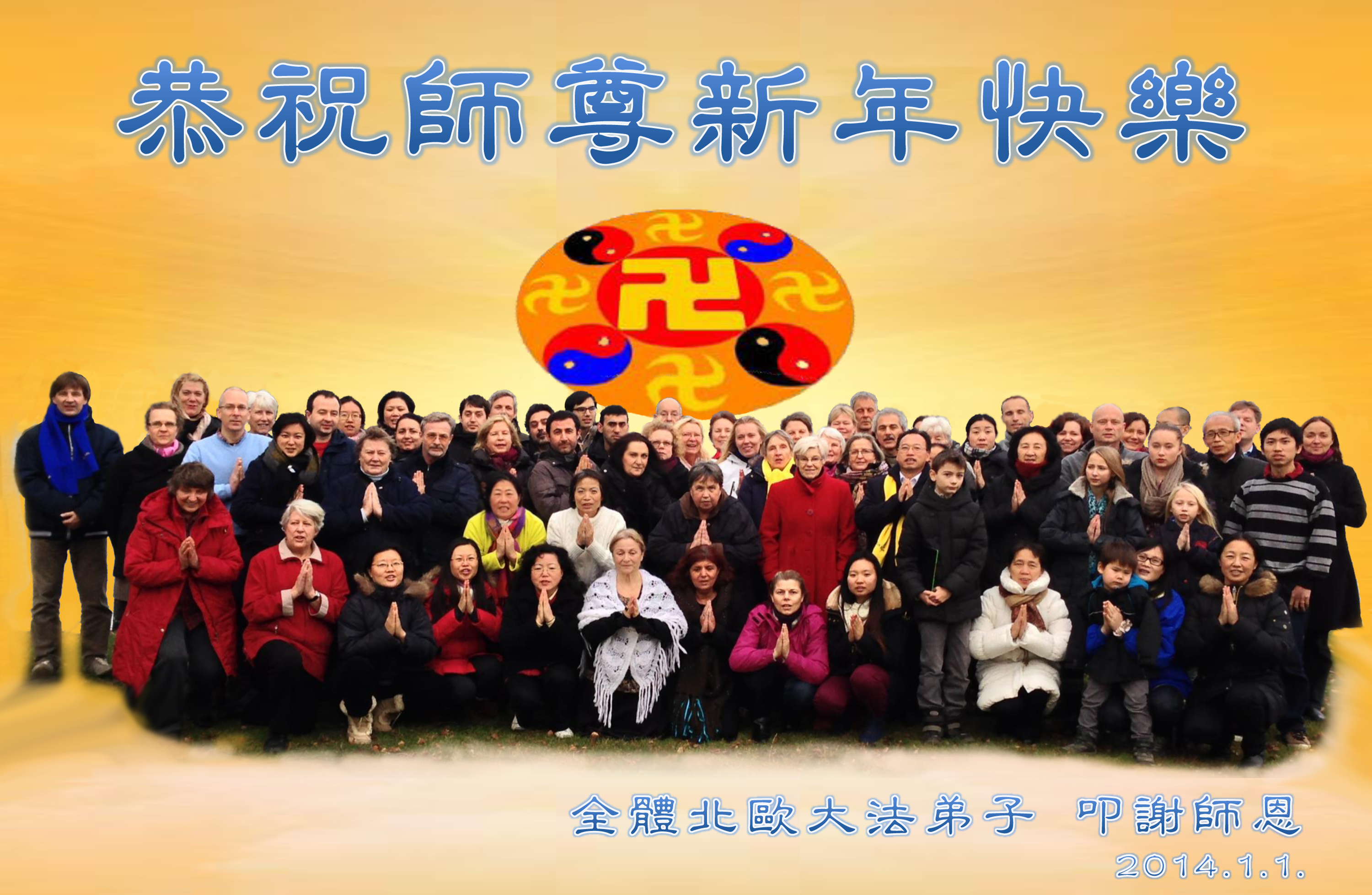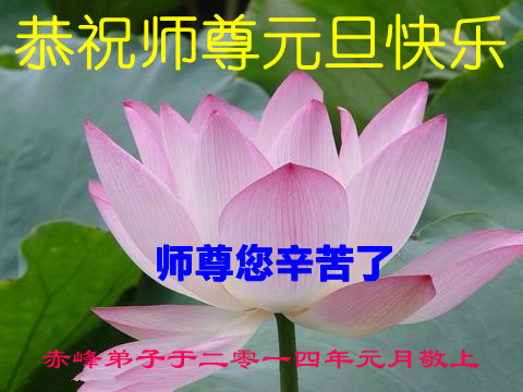向师尊问好、叩谢!二零一四年元旦到了,弟子遥拜师尊,叩首再叩首,谢谢伟大的师尊!在新的一年里,弟子一定听师尊的话,精進实修,兑现誓约。再次叩谢师尊!合十