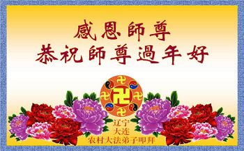 我是明白真相的世人,也是受益匪浅的人,在这辞旧迎新时刻,我们全家人给李洪志大师跪拜,祝贺李大师过年好,新年愉快。感谢李大师的慈悲救度,让我知道了人生的真谛,让我明白做人的道理。我一定要珍惜自己生命,支持法轮大法到底。