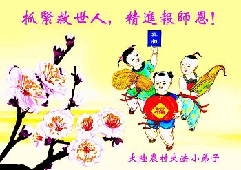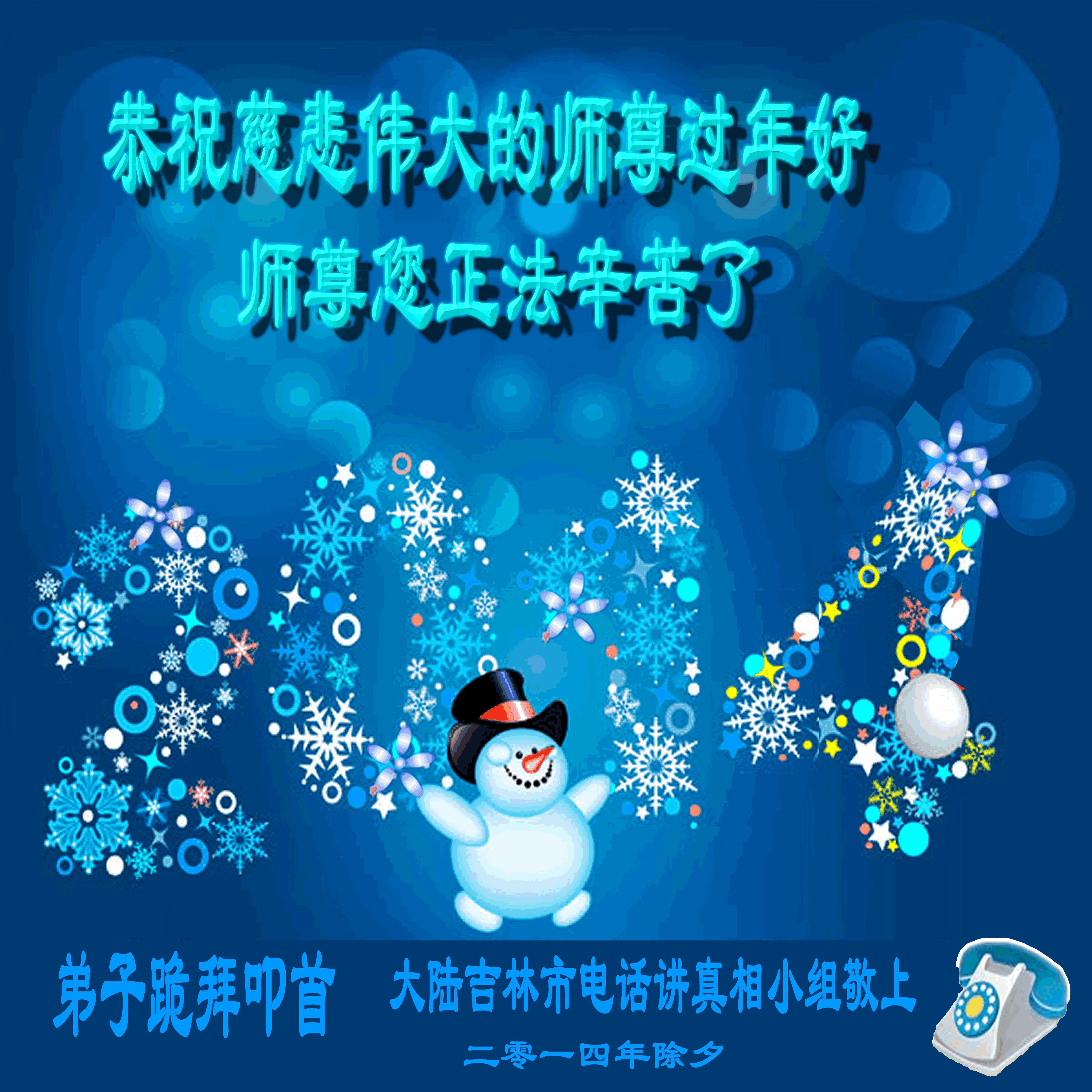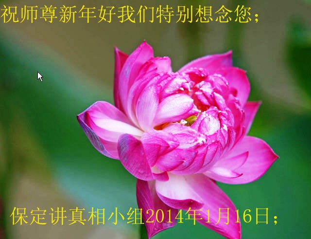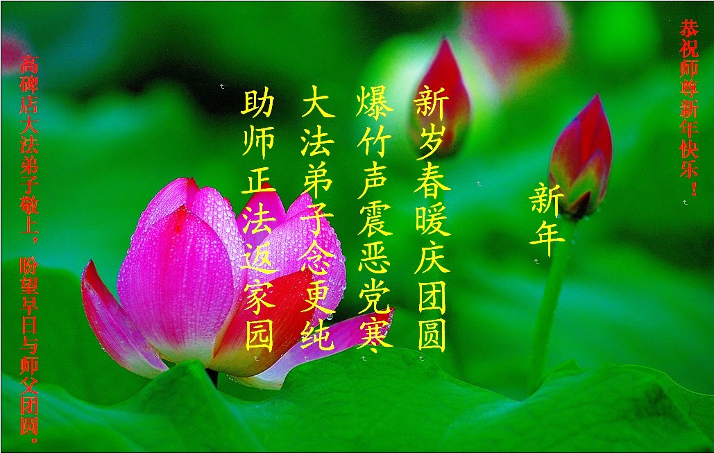无限的感恩李大师慈悲救度,无限的感激冒着生命危险在中国大陆向世人传递真相的每一位法轮大法修炼者,并祝他们新年快乐!