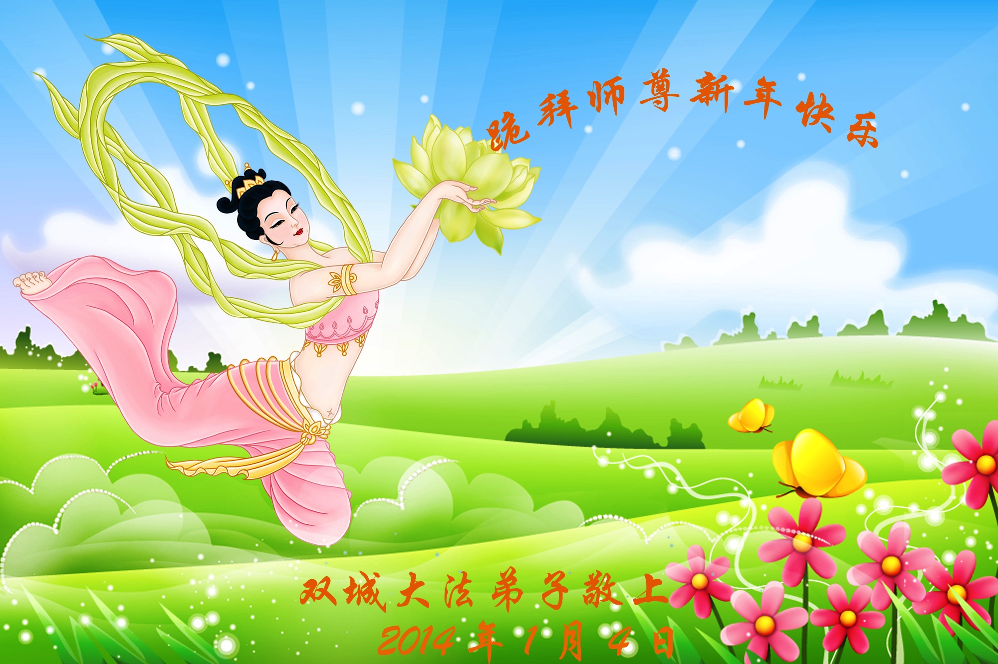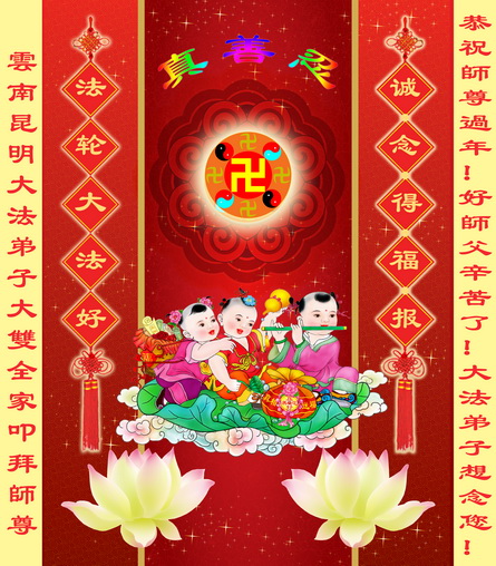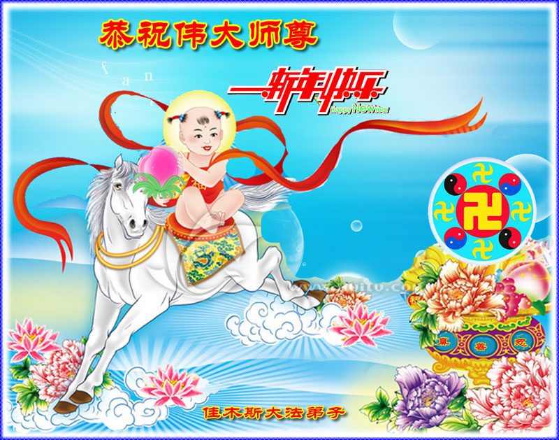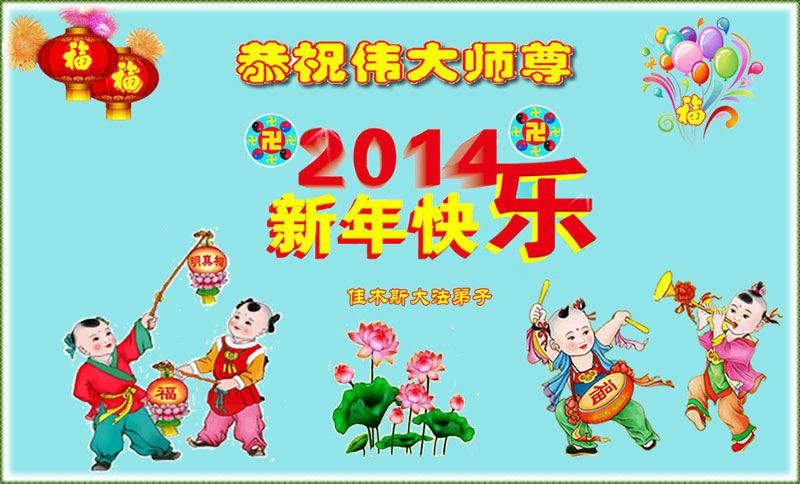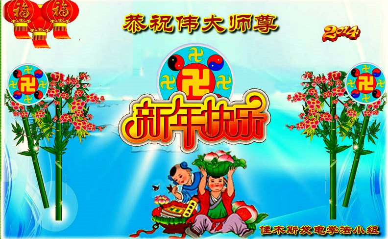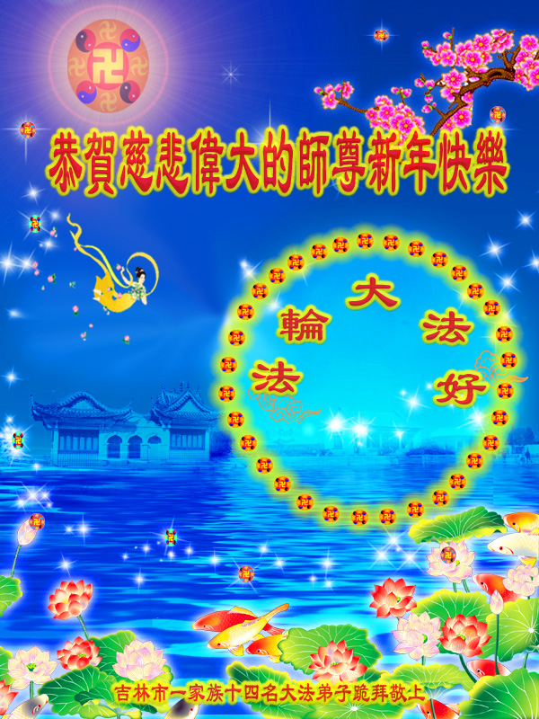 值此新年之际,我们携全家老小以及沐浴法轮大法恩泽的世人衷心的祝贺慈悲伟大的李大师新年愉快!